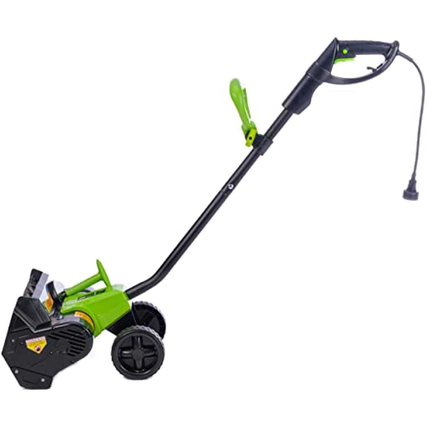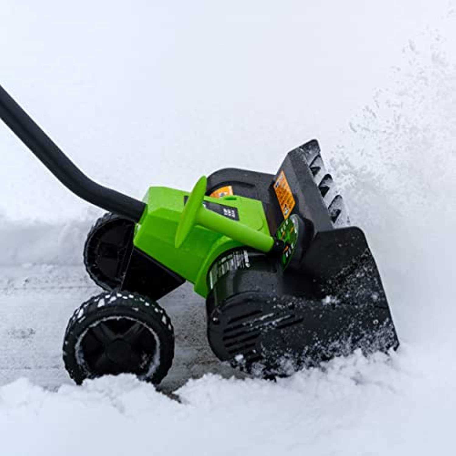 The Earthwise 16 electric snow shovel offers an efficient and eco-friendly solution to snow accumulation on walkways, driveways and other paved surfaces. Easy to use and maneuver with 6? transport wheels and a durable 12-amp motor. Easily clears away snow up to 8 deep and creates a path 16 wide. Simply walk-behind this power snow shovel and let it do all the work. The discharge vanes offer three positions that give you the option to choose which direction the snow will go. Throws snow up to 30 feet away. No gas, no oil, no fumes. Starts every time. Earthwise is the Clean Air Choice!