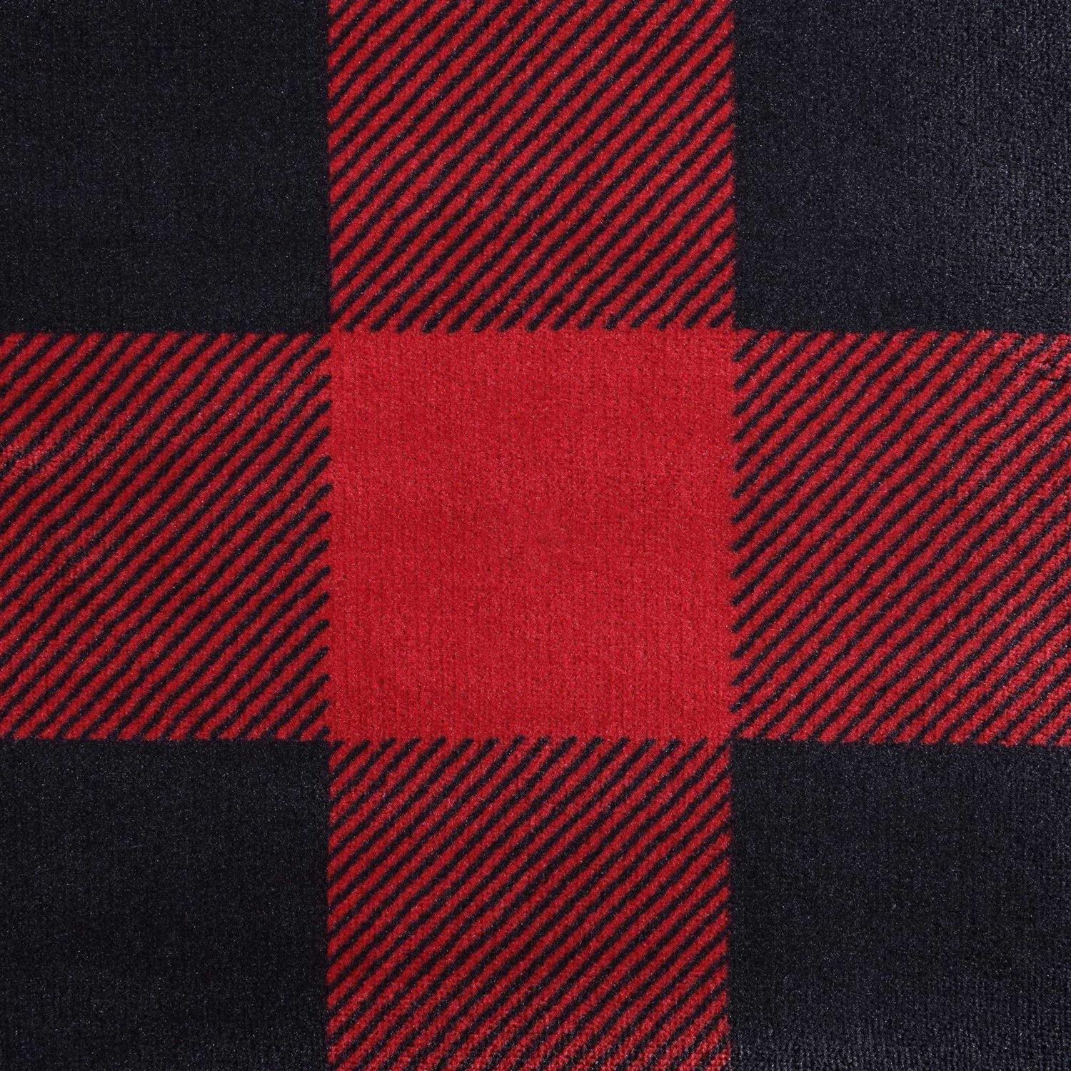 Eddie Bauer Cabin Plaid Flannel Sherpa Throw, Red