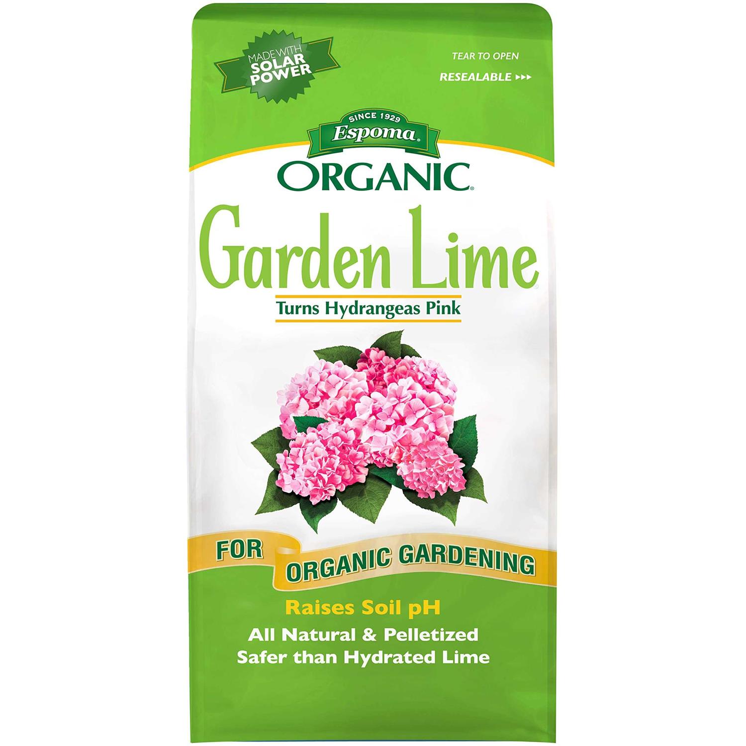 The Espoma Garden Lime is a special organic supplement, formulated with 100 percent natural and organic ingredients that contain no fillers and sludges. The garden lime transforms hydrangeas pink and it alters the pH level of excessively acid soils. Compared to other supplements, this pure plant food is safer than hydrated lime. The garden lime comes in a 6.75 pounds, easy to close bag. This is pelletized for easy application.