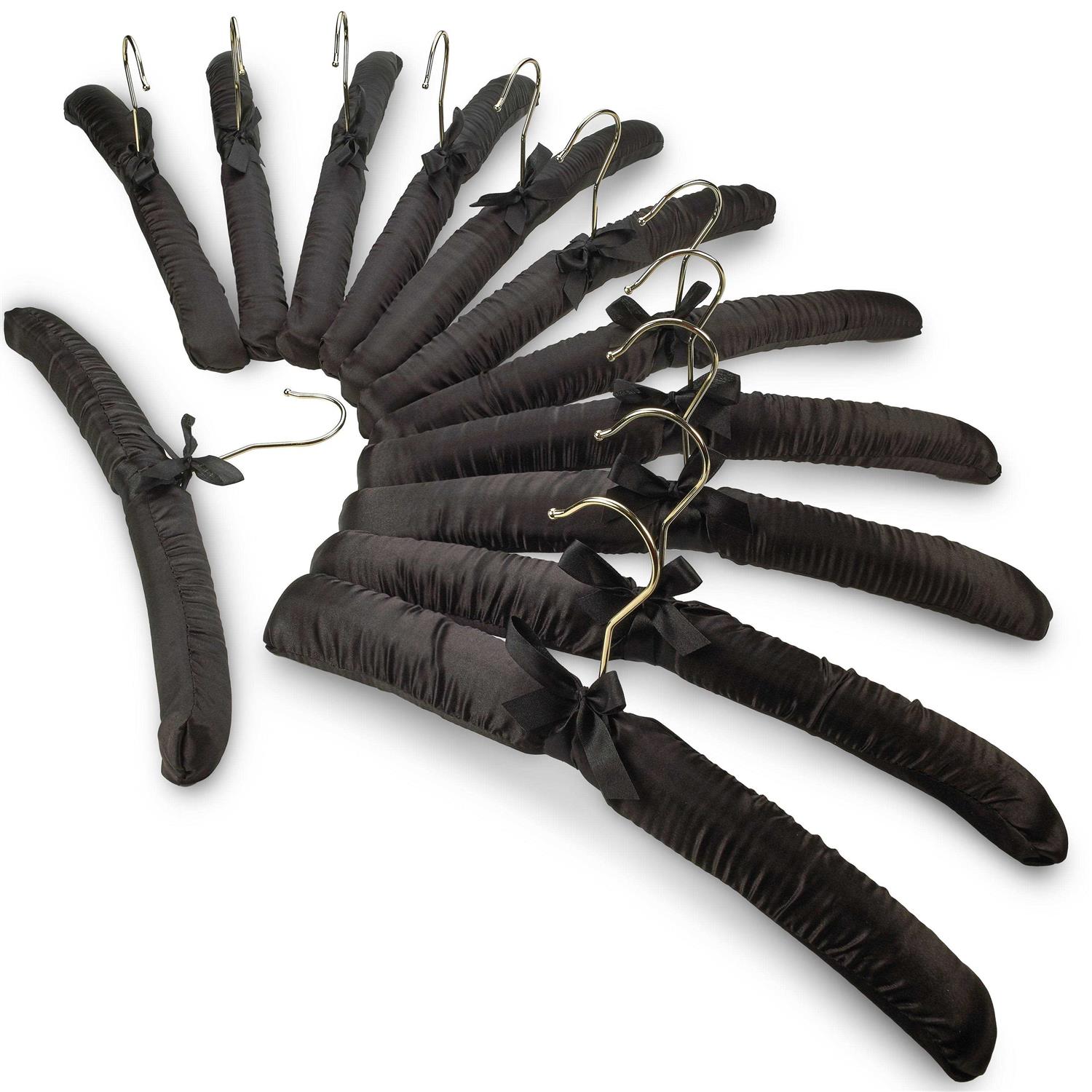 Florida Brands Satin Padded Hangers, Black with Gold Hooks, 12-Pack