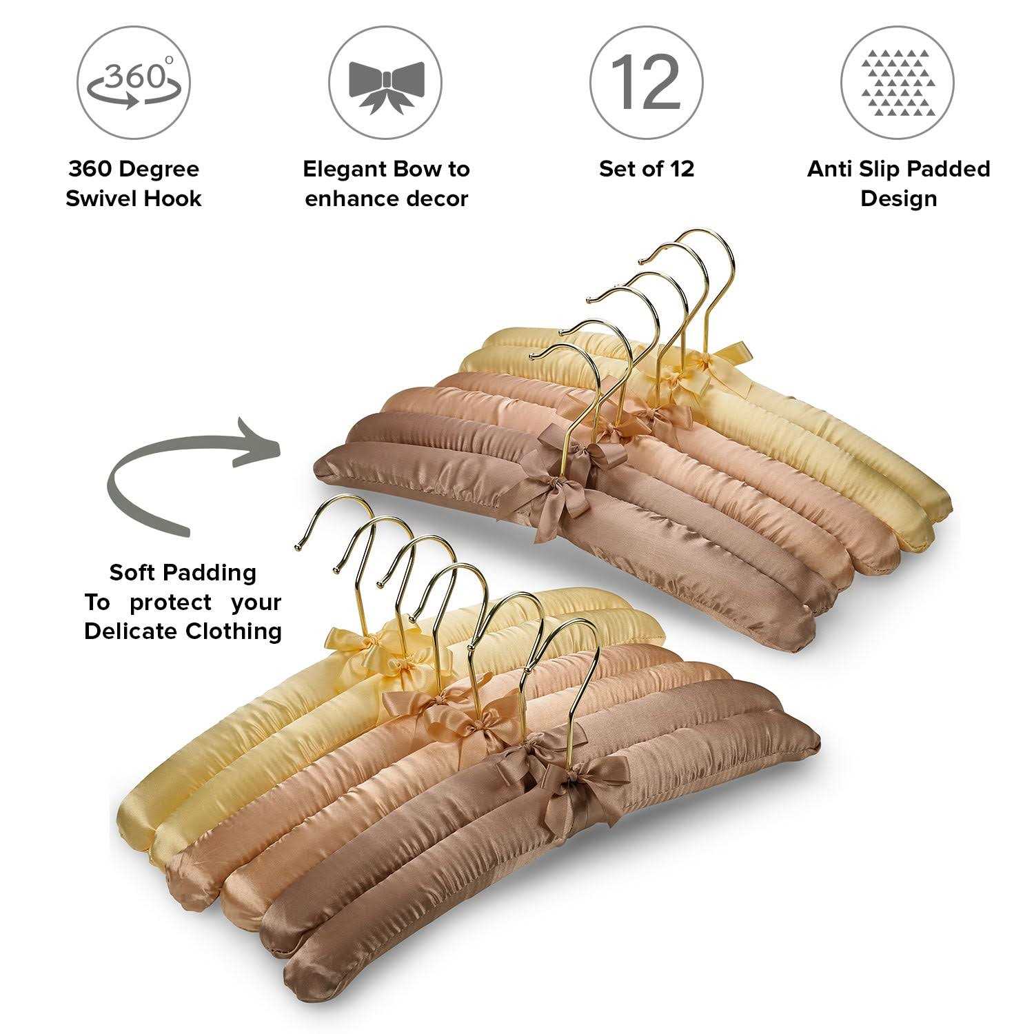 Florida Brands Satin Padded Hangers, Ivory with Gold Hooks, 12-Pack