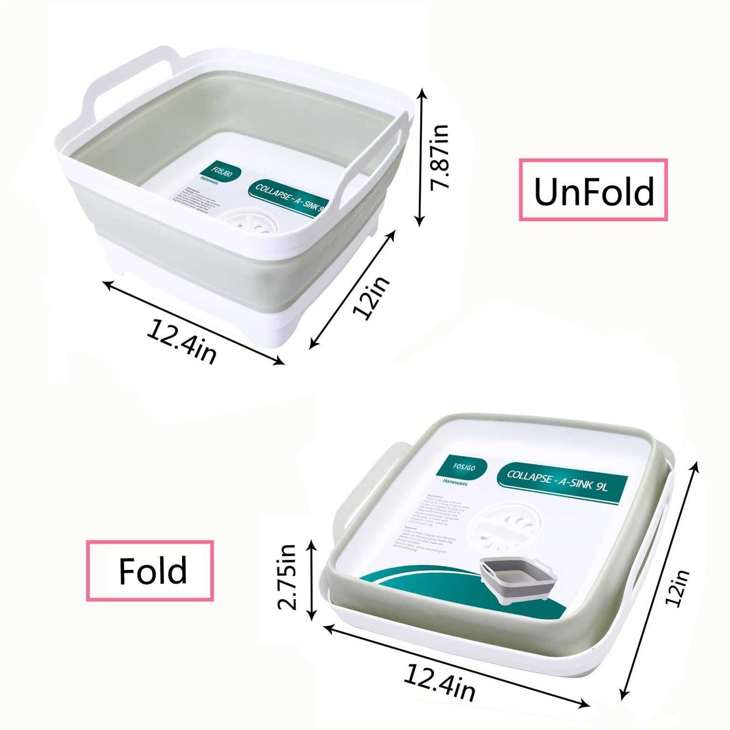 Fosjgo Dish Basin Collapsible with Drain Plug Carry Handles for 9 L Capacity