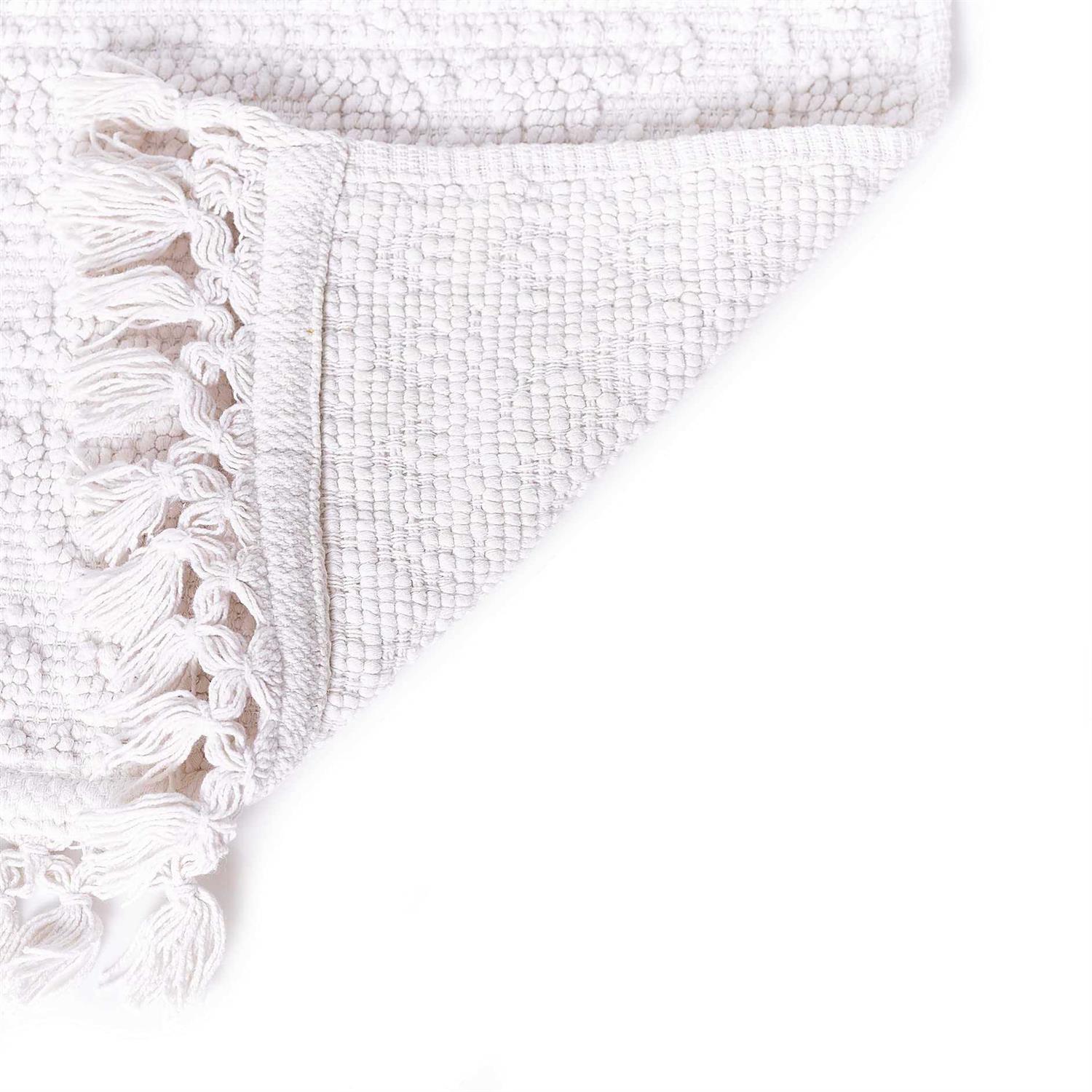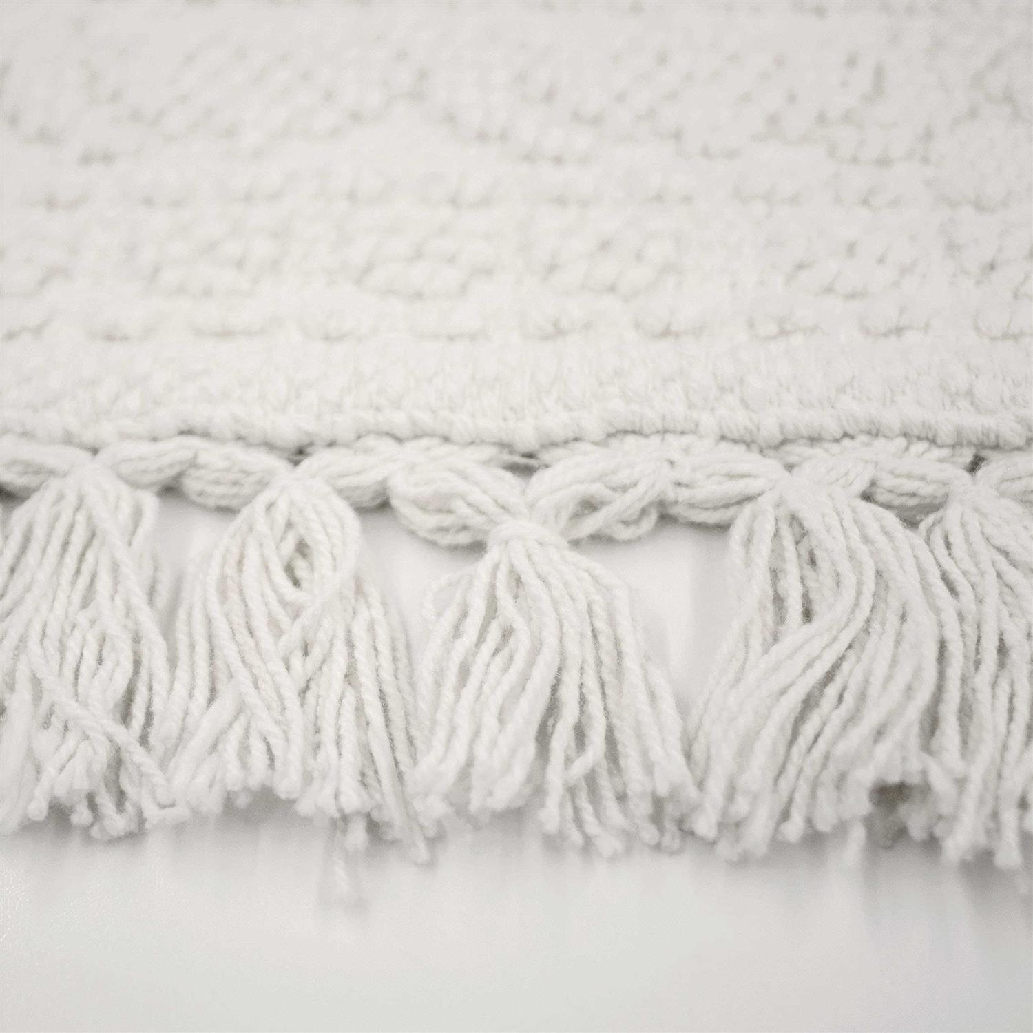 White Nellore Fringe Two-Piece Cotton Bath Mat Set. Reinvent your bathroom’s decorating scheme with this all-cotton set that feels sweet on wet feet and that’s also incredibly easy to wash. Includes 17” x 24” rug and 20” x 34” rug. 0.25” thick. 100% cotton. Machine wash; hang dry. Imported.