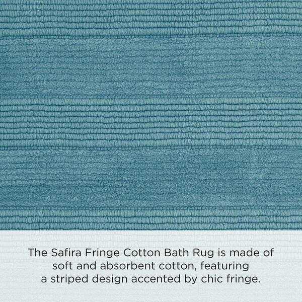 French Connection The Safira Fringe Cotton Collection by French Connection will effortlessly elevate your bathroom décor. Each super soft and absorbent cotton bath rug features a striped design accented by the chic fringe.