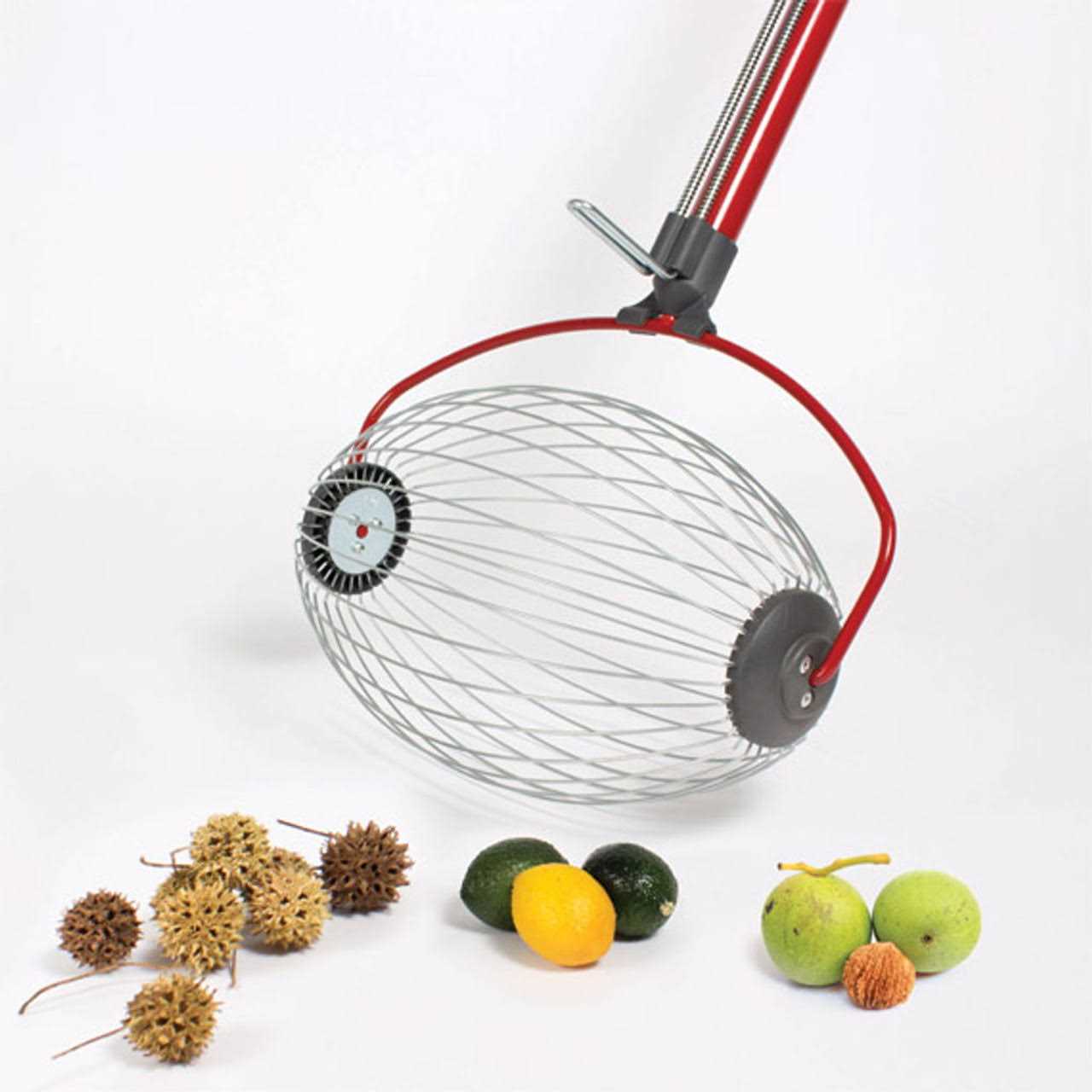Picks up objects 1-1/2 to 3 in size such as walnuts, sweet gum balls, magnolia seed/flower heads and even small fruits. Capacity is approximately 1-1/2 gal. Does not pick up acorns or pecans. The Weasel large nut gatherer is an easy to use rolling pick up tool, for nuts and more. No bending over. Saves time.