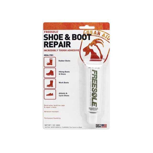 A good pair of boots has to withstand the rigorous wear and tear that you subject them to. That’s why you need a shoe repair adhesive that works just as hard as you do. Whether on the job or out for an adventure, Freesole by Gear Aid offers permanent repairs to boots and shoes. Freesole not only repairs, but also adds abrasion resistance, creates durable toe caps and rebuilds worn heels for added shock absorption. The patented urtehane rubber formula provides tremendous chemical and abrasion resistance and is unaffected by heat or cold at minus 20 degrees to over 200 degrees. With clear or black color options, you’ll always have a matching repair with the Color Sync colorant kit. From rubber boots to steel toe boots and everything in between, repair and reinforce your footwear with Freesole.