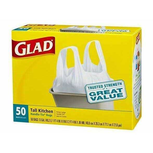 Glad Tall Kitchen Handle-Tie Trash Bags are designed with built in handles to help make trash collection more convenient. The strong and dependable handles allow you to lift and carry the fullest bag with ease avoiding messy trash disasters. Simply cross tie the handles together to securely close, grab the bag by the handle and remove from container. The 13 gallon size is perfect for the kitchen or throughout the house and is great for your seasonal cleaning needs like Spring Cleaning and Back to School. Glad trusted strength at a great value.