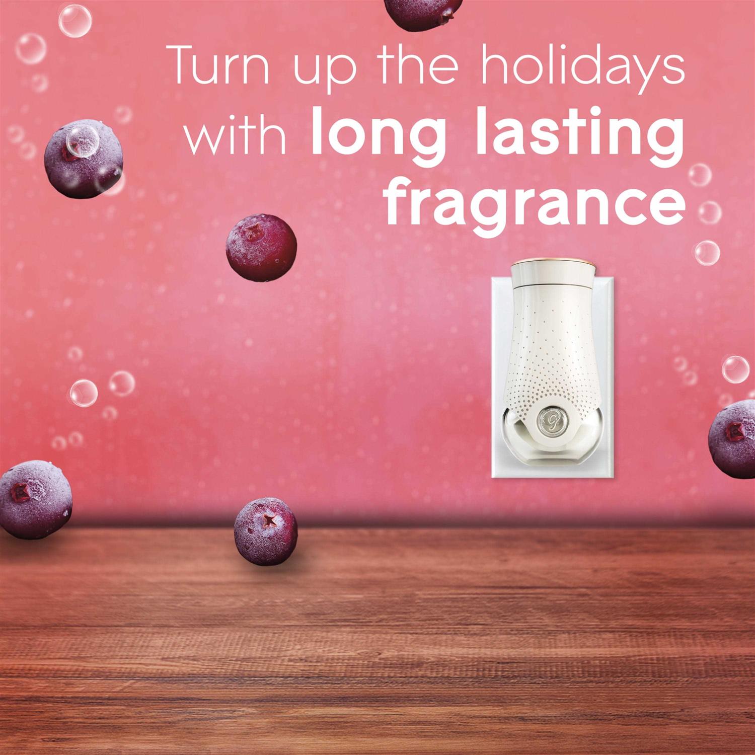 Turn up the holidays with Crisp Cranberry Champagne, a limited edition plugIns scented oil air freshener from the Glade Holiday Glow Collection.