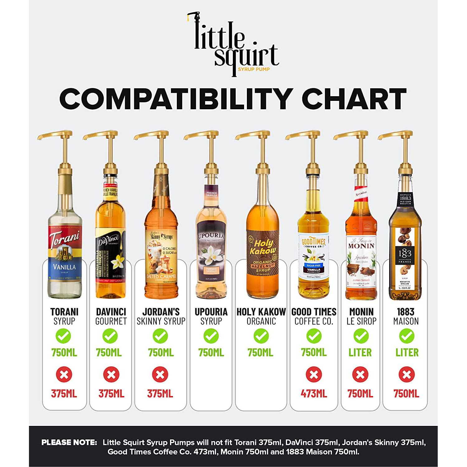 Little Squirt Syrup Pump for Coffee Syrup Bottle (Gold) – Fits 750ml 25.4oz Torani, Starbucks, Skinny, DaVinci, Monin Bottles, Coffee Syrup Pump
