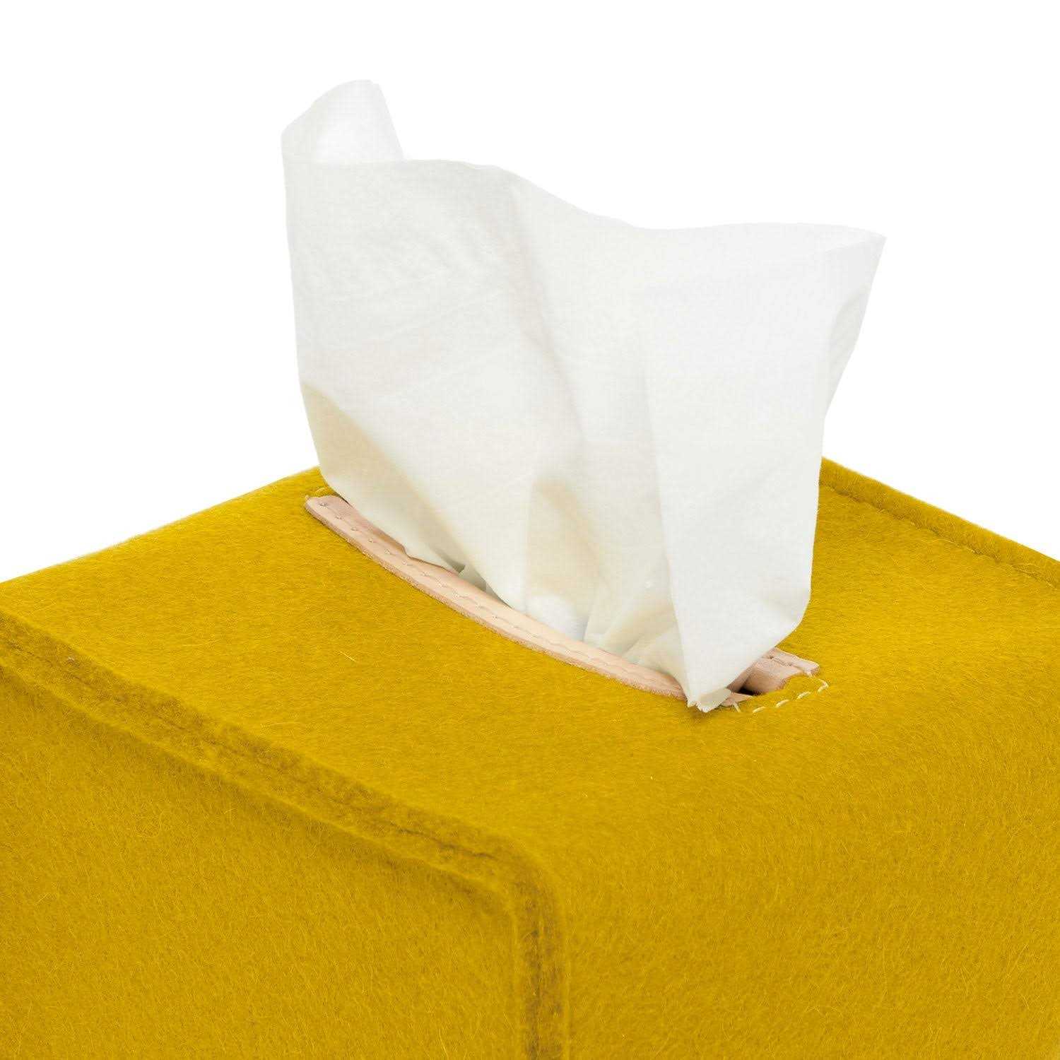 A stylish tissue box cover for the stylish home. Cover up branded tissue boxes with a simple and minimal felt sleeve for that last finishing touch in your home. Leather trimmed tissue opening. The natural vegetable tanned leather is untreated and will slowly darken and patina through time and use. Graf LantzMade in USA 4 1/2” x 4 1/2 x 5″ h3mm merino wool felt, vegetable tanned leather trim Please note: During storage and packaging, this tissue box cover may have a crease when unfolded. Hit with a spot of steam to ease out or give it a little time for the wrinkle to fall out.