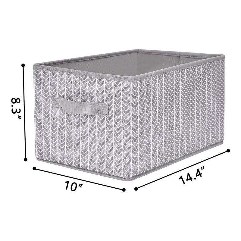 Easy-to-assemble storage bins with thick cardboard and 2 handles. Ideal storage organizer for towels, tee shirts, accessories, magazines, and more at the home, living room, den or office. The lidless design makes it easy for you to find what you need without rummaging around. Collapsible design of this storage basket makes it convenient to save space and take along. You could simply fold it up when you don’t use it or when you need it for travel use. Storage box measures 14.4-Inch x 10-Inch x 8.3-Inch, 100% polyester.