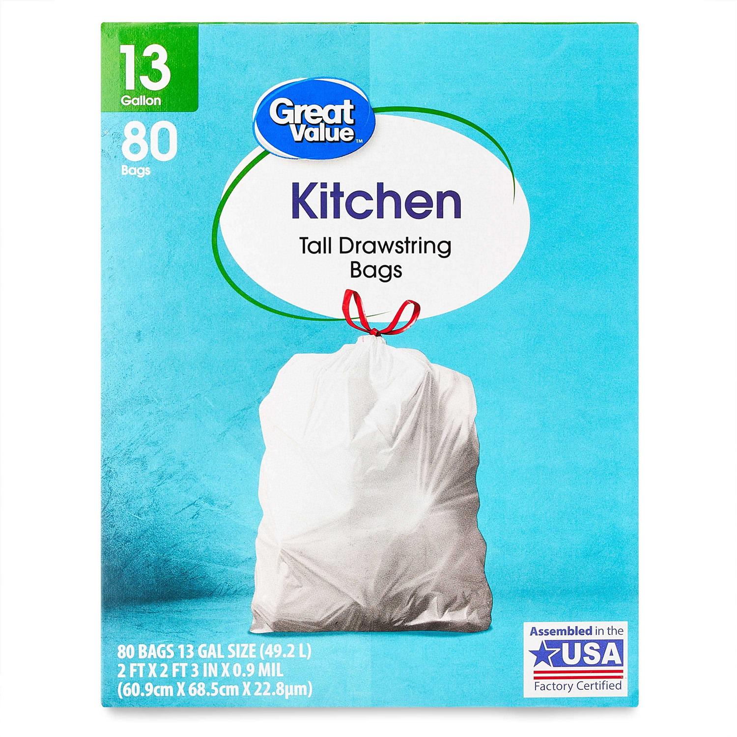 Great Value Kitchen Tall Drawstring Bags, 13 Gallon, 80 Count
