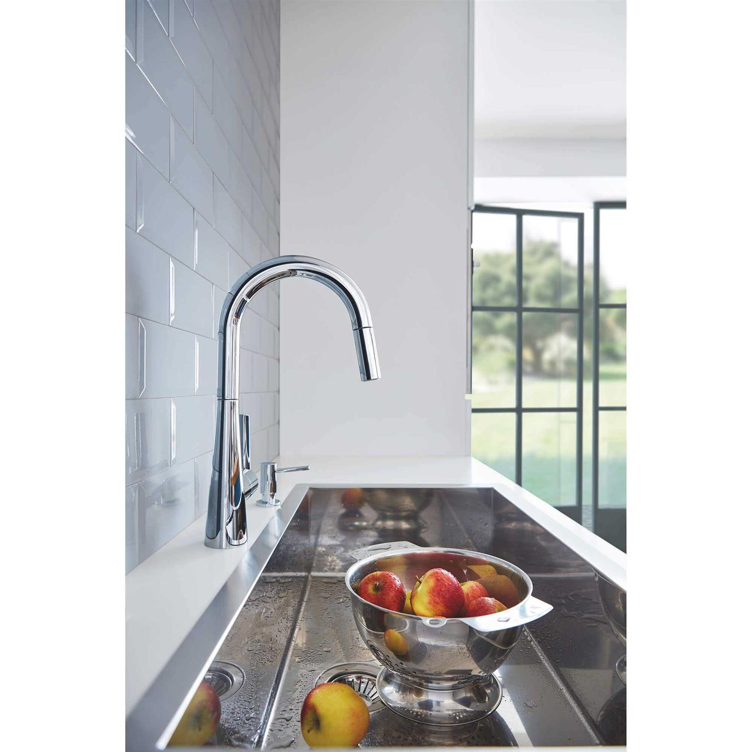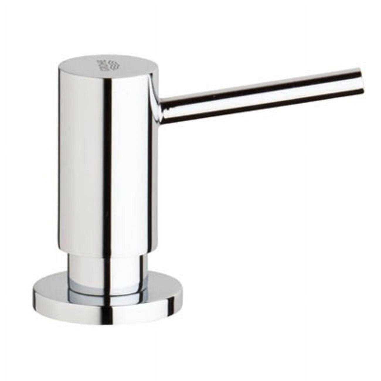 Cosmopolitan Soap/Lotion Dispenser Feature o GROHE StarLight finish for scratch and tarnish-resistant surfaces for a lifetime of beautyo Brass head and flangeo One piece cartridge pump unito Fillable from aboveo 15 oz. Capacity DescriptionOptional soap/lotion dispensers and escutcheon plates are available to optimize the functionality of your kitchen workspace. Matching finishes make these accessories the ideal compliment to any GROHE faucet. In situations where you can drill countertops to customize your needs soap/lotion dispensers allow several options. But soap/lotion dispensers and escutcheons become indispensable when adapting to sinks with several existing mounting holes.