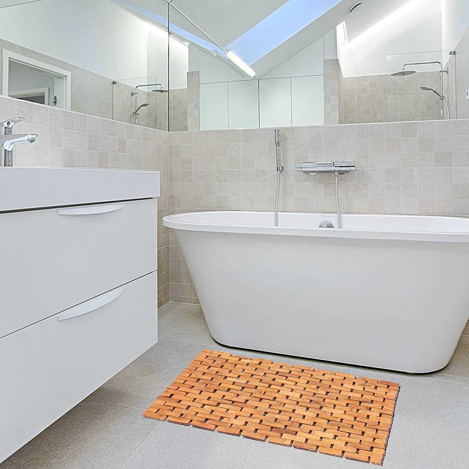 HANKEY Multipurpose Bamboo Bath Mat For Shower Spa Sauna with Non Slip Feet