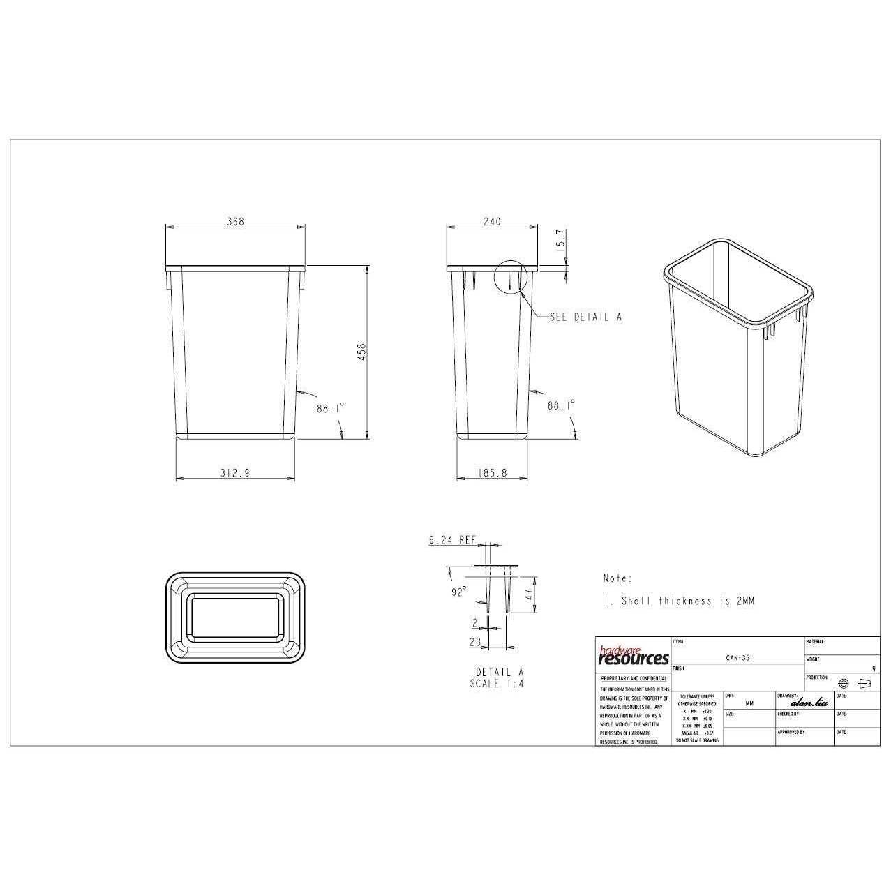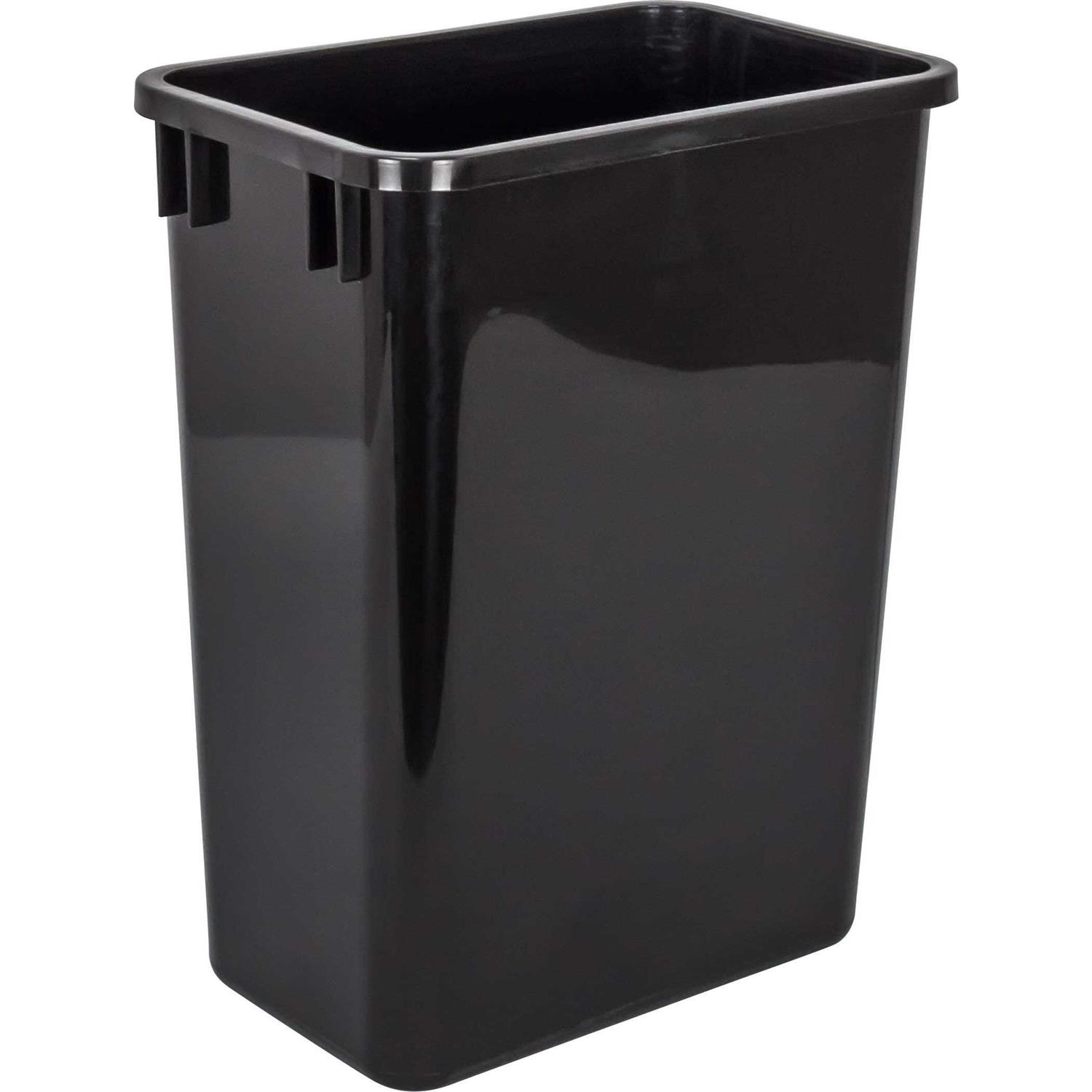 Fits double and single 35qt pull-out waste container kits Made from high quality polymer. Not door mountable Package dimension value is 9 7/16 in. W x 14.1/2 in. D x 18 in. H 35-quart plastic waste container black.