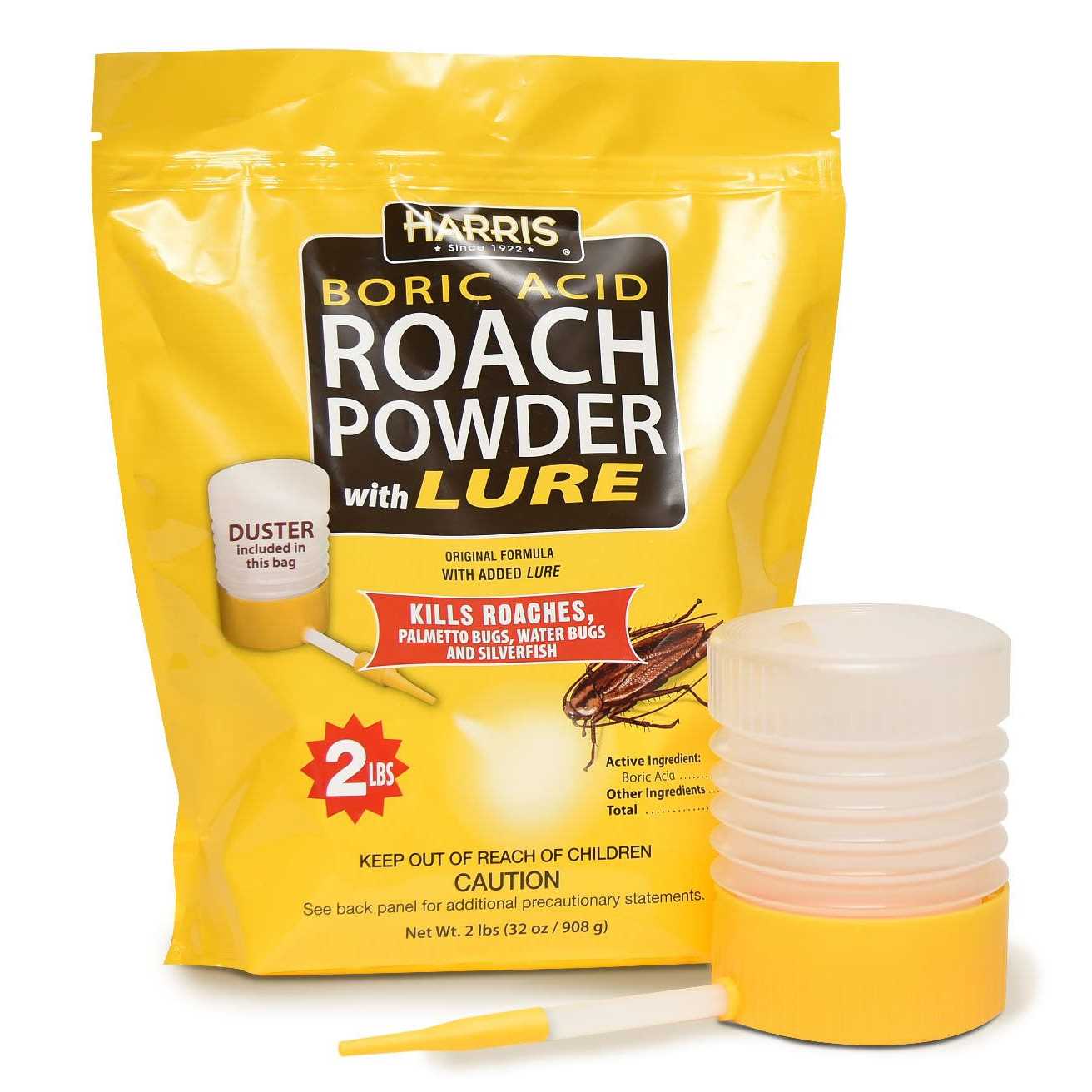 Harris Boric Acid Roach Power with lure kills Roaches, Palmetto Bugs, Waterbugs and Silverfish. The included powder duster reaches into cracks and crevices where insects hide. Harris Boric Acid Roach Power continues to kill roaches, palmetto bugs, water bugs and silverfish for weeks after application as long as it’s kept dry. Insects coming into contact with the powder will die within 72 hours after initial contact.