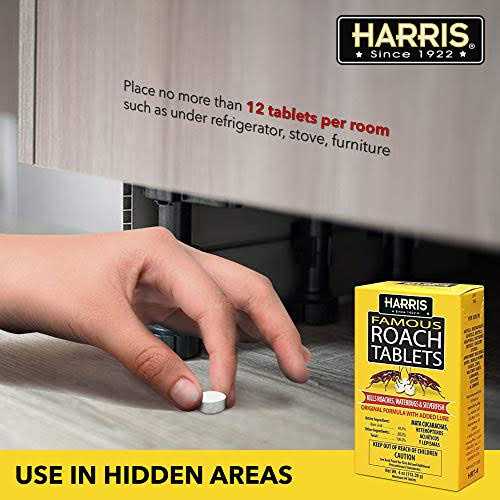 The Harris 4 oz. famous roach tablet provides an easy and economical way to rid your entire house or business of common pests such as roaches, water bugs and silverfish. Placing the tablets is a clean and efficient operation. They feature an odorless and long-lasting formula with no chemical smell.