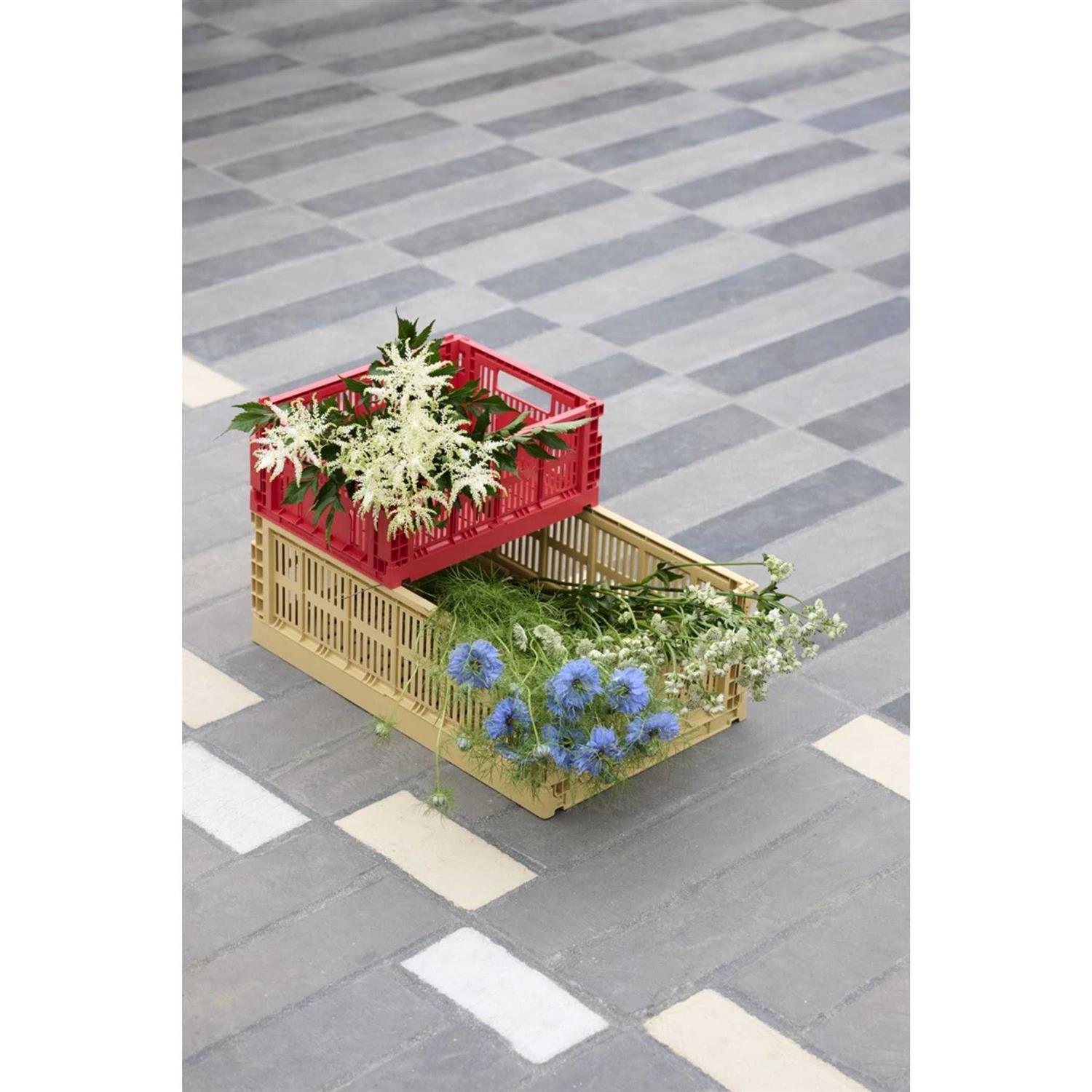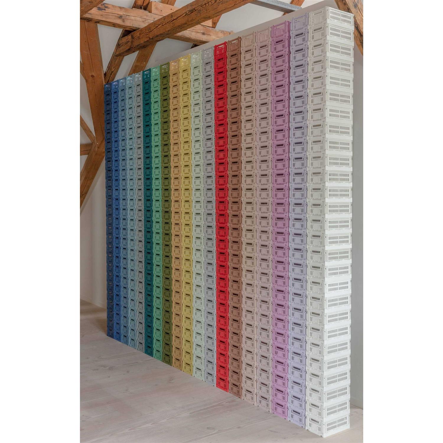 HAY’s Colour Crate S in lavender is part of a series of colourful, multifunctional storage boxes with a distinctive, perforated design. The folding crates are made from 100% recycled post-consumer plastic waste in a variety of different colours and sizes. The crates can be stacked on top of one another in different size combinations. The multifunctional crates are suitable for storing and organising a wide range of items on shelves, tables or inside cupboards. HAY’s Colour Crate is a multifunctional, coloured large crate, available in different colours. The folding crates are handy to use, stackable and easy to combine by its trendy colours. Use this practical storage crate to storage accessories in your kitchen, bedroom, office or bathroom.