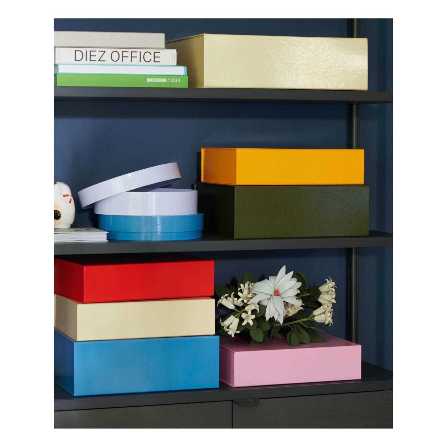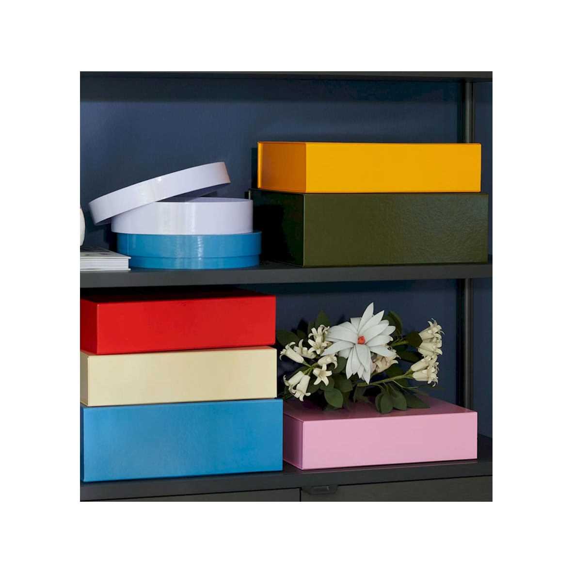 This multifunctional, stackable storage solution from Danish brand HAY features a ventilated design and is available in a range of fresh spring colors. Made of polypropylene, the HAY Color Storage Box measures 8.75h x 15.75w x 23.75”d. Wipe with a clean, damp cloth. Do not use scouring pads or cleaning products containing alcohol.