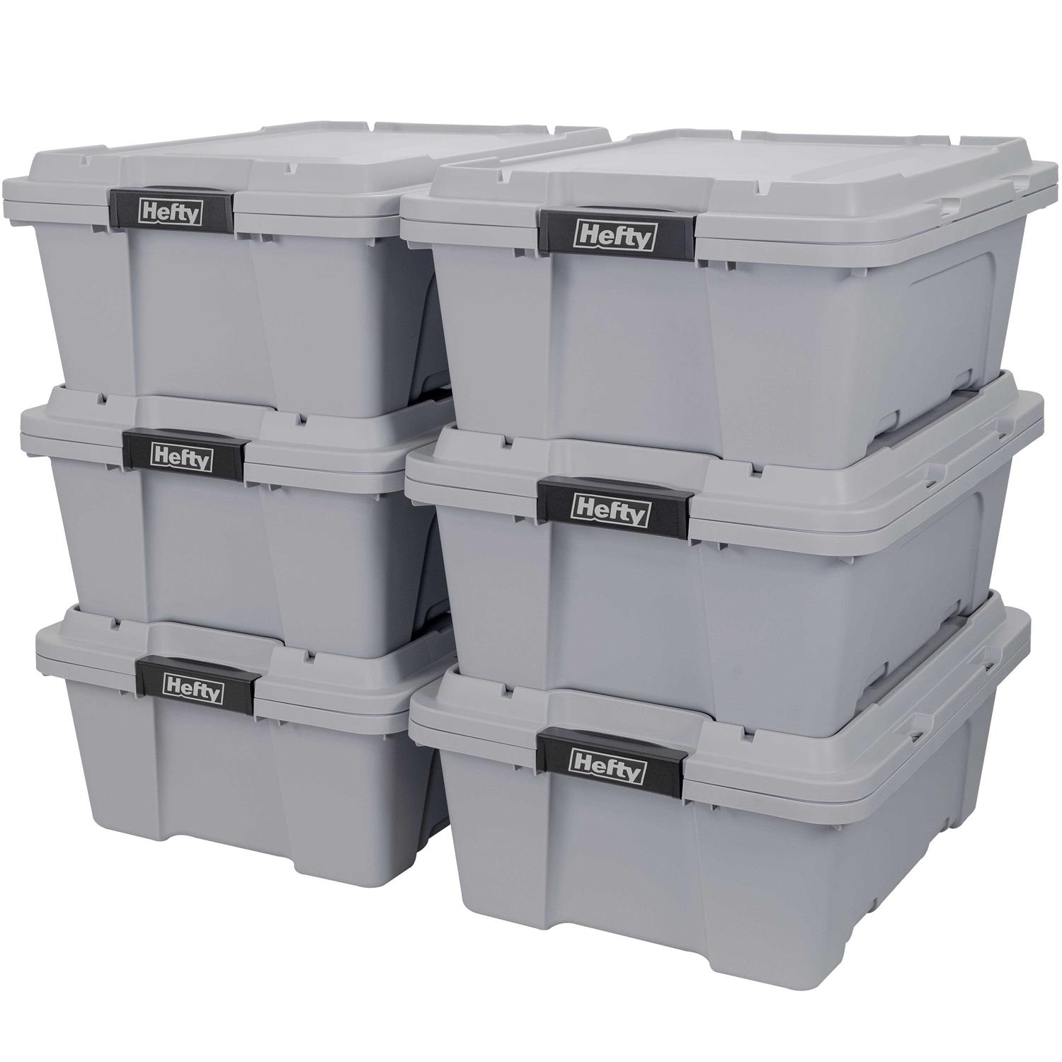 Hefty Max Pro 48 Quart Storage Tote Gray, 6/Pack (7169HFTCOM52252)