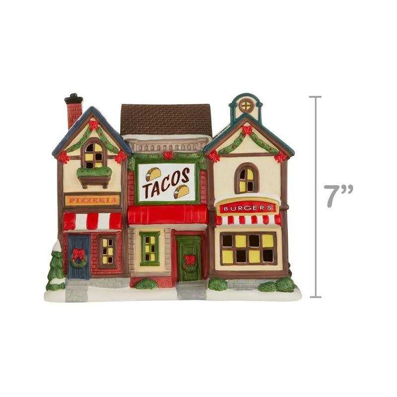Add festive charm to your miniature displays with this delightful Holiday Time Christmas Village Multi-Color Light-Up Pizza, Tacos, Burgers Restaurants. This decoration will bring your holiday village to life. Set up your other Christmas village shops, houses, and citizens then add this cluster of buildings wherever your heart desires. Durably crafted to be used year after year, this set of buildings can also be used in a variety of other seasonal decorations. Express your love for the most wonderful time of the year when you decorate with this Holiday Time Christmas Village Multi-Color Light-Up Pizza, Tacos, Burgers Restaurants.