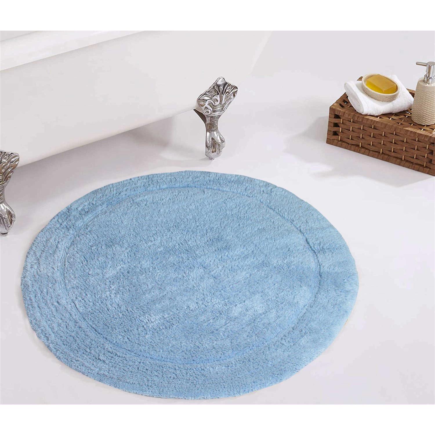 Home Weavers Waterford Collection Cotton Round Shape Bathroom Rug Soft and Absorbent Bath Rugs Non Slip Washable 30″ Round – Blue