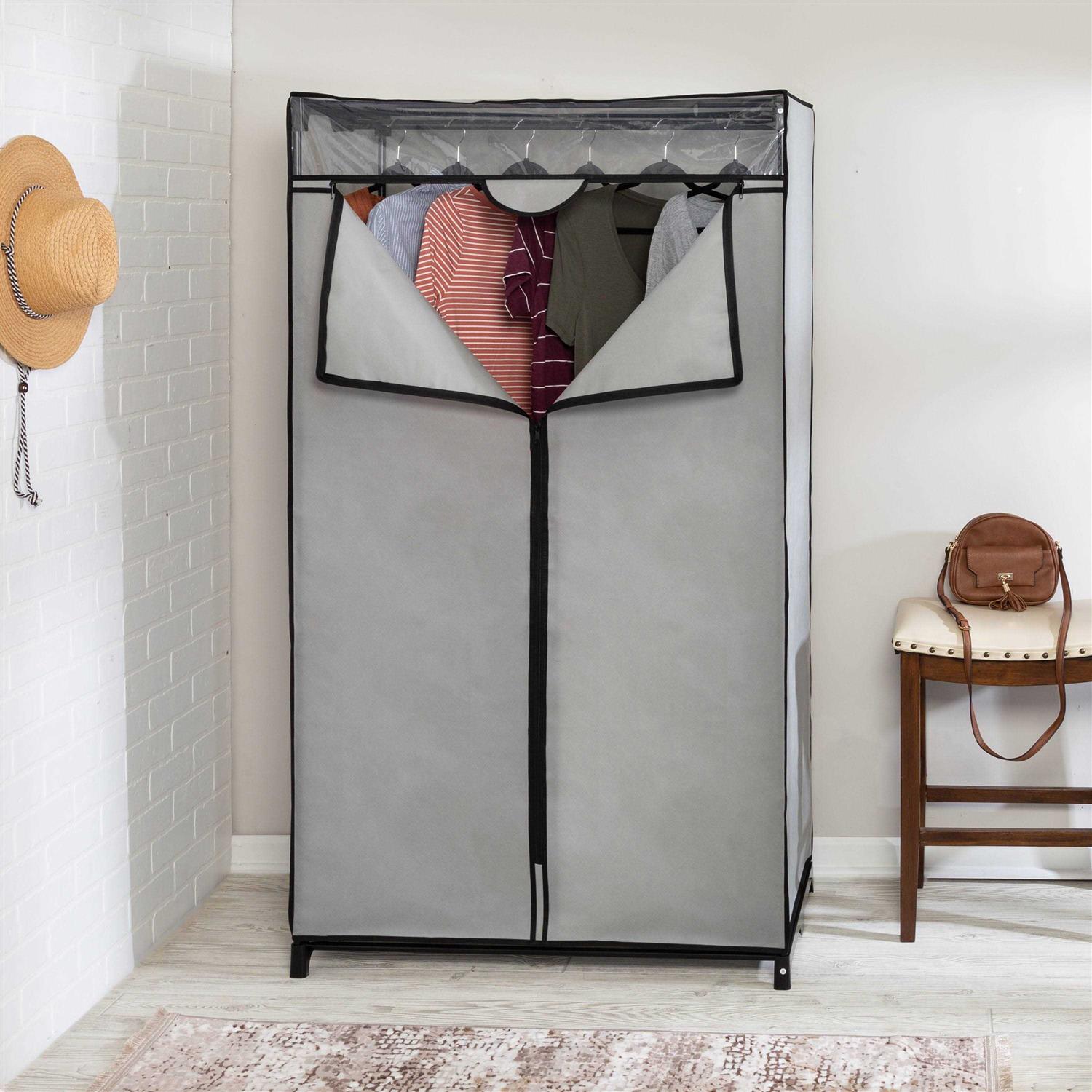 A capsule wardrobe is a trendy, yet sensible practice for everyday clothes. But what about the statement pieces? So enter the portable wardrobe closet. Its a great solution to free up closet space for the sweaters and slacks that get us through most days, while giving dedicated storage to those statement pieces were not quite ready to part ways with. An upgraded heavyweight non-woven cover protects garments while draped over their bold or bright surfaces, helping to mute and minimize whats otherwise a spacious, double-door freestanding closet.