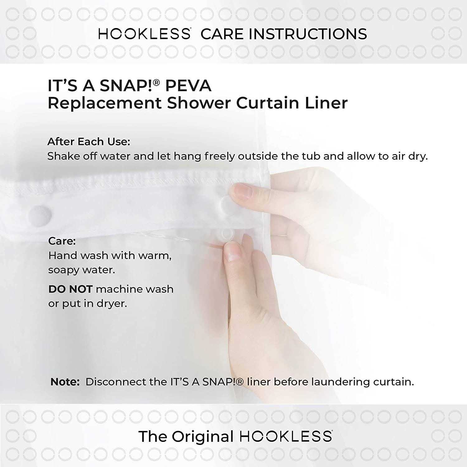 Hookless Extend the life of your Hookless shower curtain by adding our It’s A Snap! Plastic liner. Our liner is easy to replace and snaps on and off so you can change it in seconds. The hem is specially sewn to repel water more effectively and promote more efficient water run-off, reducing mildew formation. The magnetic bottom helps hold the shower curtain liner in place and keeps water from splashing out.