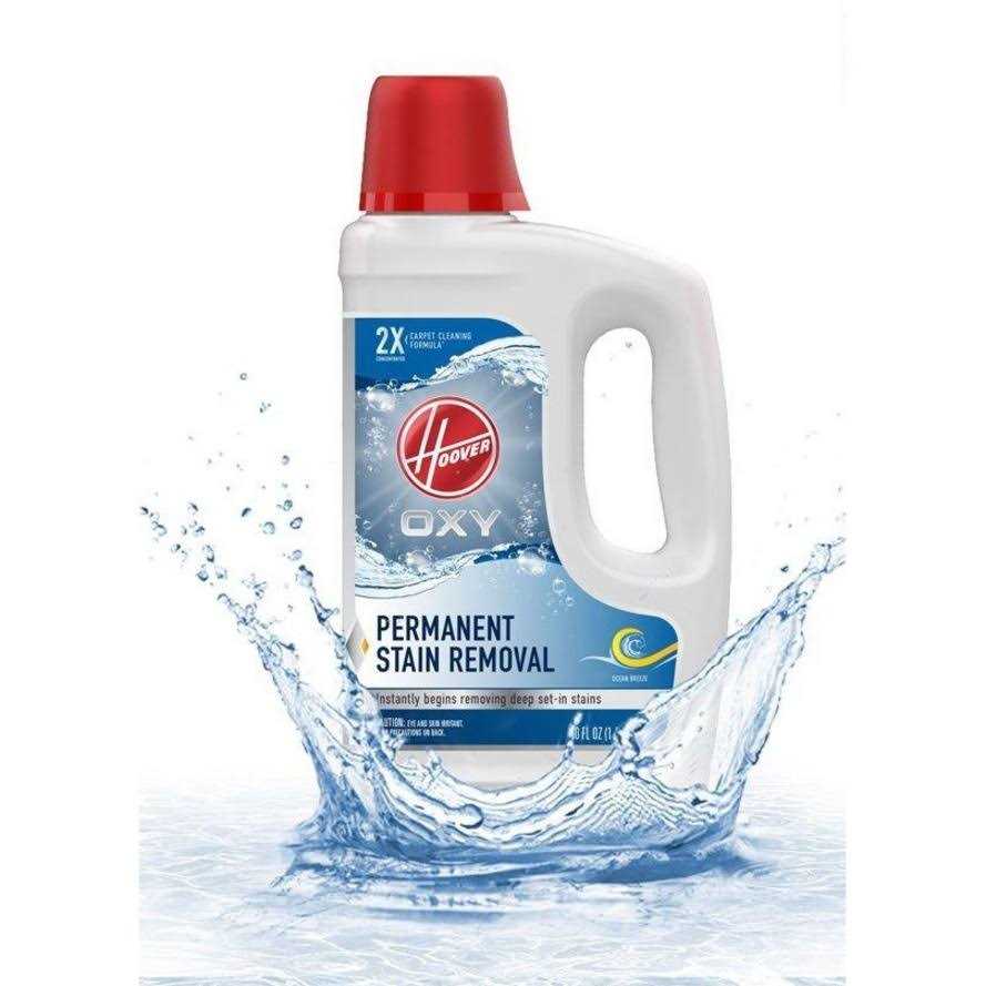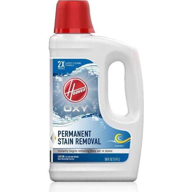 Eliminate dirt and odors from your carpets, upholstery and car interiors with this 50-oz. Oxy technology removes tough colored spots and stains, while the careful formulation lets you safely use the liquid with most deep cleaning machines. This Hoover Oxy carpet cleaning formula has a fresh ocean breeze scent that lasts a long time. Compatible with most carpet washers For use with your existing machine. 50-oz. bottle Ensures you have enough detergent on hand. Ocean breeze scent Enjoy a fresh ocean breeze scent in your home. Oxy technology Permanently removes dirt and tough, colored stains. 2x concentrated formula Helps reduce the amount of cleaning agent needed.
