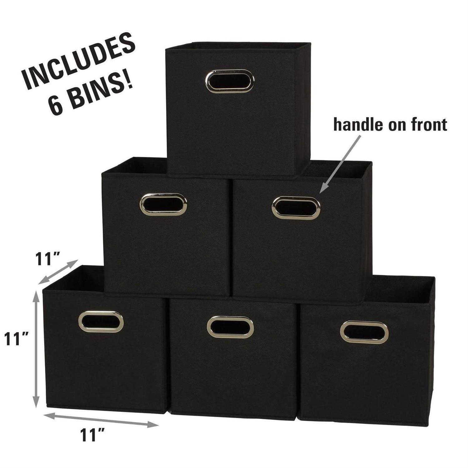 SIX COLLAPSIBLE black cubbie storage baskets for organizing offices, nurseries, and bedrooms
