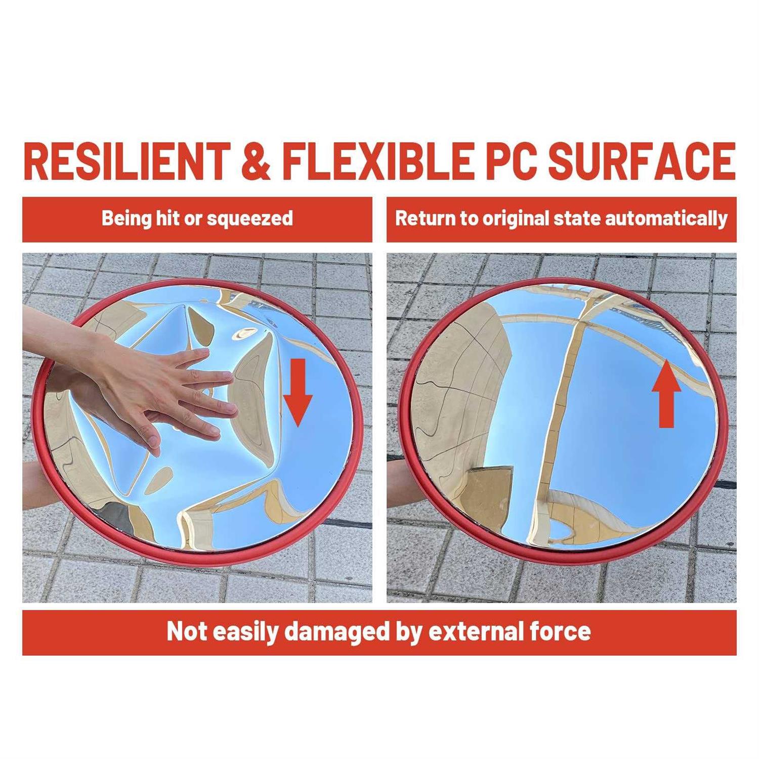 【Protective film】 The mirror surface is covered with a protective film to protect the mirror from being scratched during transportation. Please remove the protective film after installation. 【PC Mirror】 Curved security mirror is made of PC which is soft,lightweight but with strong impact resistant and shatterproof.12 inches large convex mirror improves safety and can have a perfect view. 【Stable and Durable】 The convex mirror is reliable in any weather conditions, because of the high-quality PC material, frost, hail, strong wind or direct sunlight will not damage it. 【Wide-angle View】 This 12″ wide angle safety mirror is used to eliminate blind spots, help people to check the safety situation around them, prevent accidents, injuries and theft, improve visibility and safety in various locations. Such as supermarkets, garages, parking lots, driveways, shops , intersection, street corner, narrow road. 【Easy to Install】 This safety convex mirror package contains the necessary mounting accessories and can be installed where you need it. The angle of the mirror can be adjusted after installation.