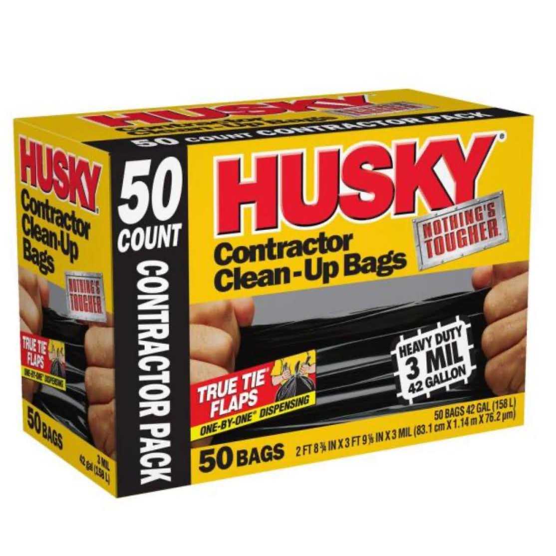 The strong, high-performance HUSKY 42 Gallon Contractor Bags are constructed from a thick, premium high-quality plastic and are puncture-resistant. They are suitable for residential or commercial use and perfect for your toughest clean-up jobs.