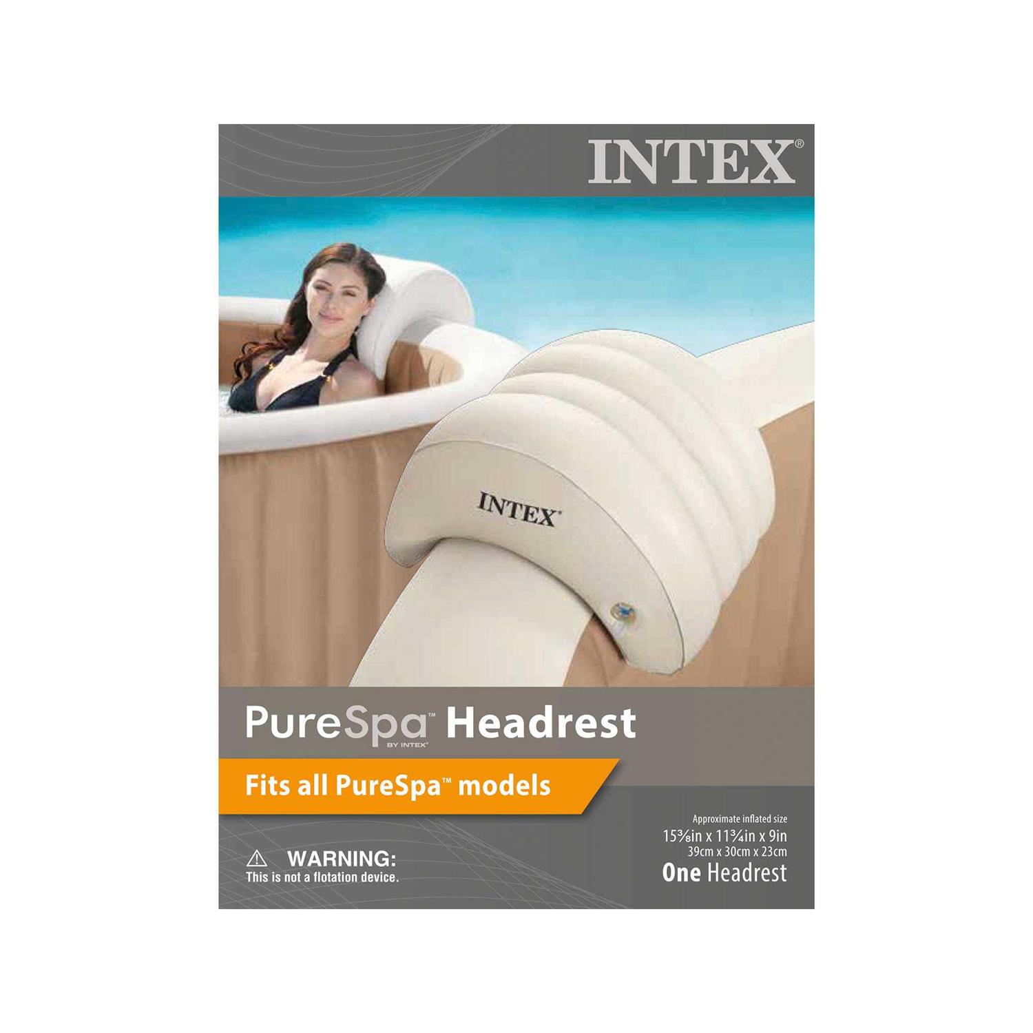 Intex The perfect accessory for your PureSpa, the Intex PureSpa headrest. This inflatable easy to remove headrest adds additional support for your neck as you indulge in your PureSpa. Designed to be placed on top of the spa wall. Weighted down (when filled with water) to secure the headrest in place. Can be partially filled with air to fit your personal preference for firmness.