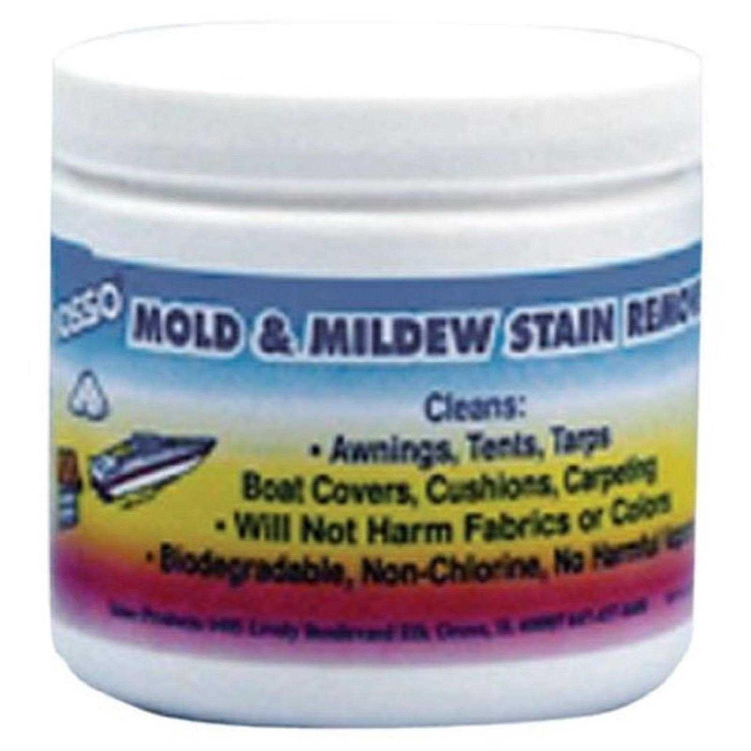 Color and Fabric Safe! Removes mold, mildew, algae stain, bird droppings, spider droppings, tannin (leaf) stain, tough dirt, grease and oil, tree sap, some food and drink stains, blood stains and more. Recommended for use on awnings, tents, boat covers, cushions, carpeting, umbrellas, camping gear, inflatables, fabrics, vinyl, plastic and fiberglass. It is non-chlorine, biodegradable and free of harmful vapors. One jar makes up to three gallons of solution. One 65 oz. pail makes 16 gallons of solution. One gallon cleans 150 sq. feet.
