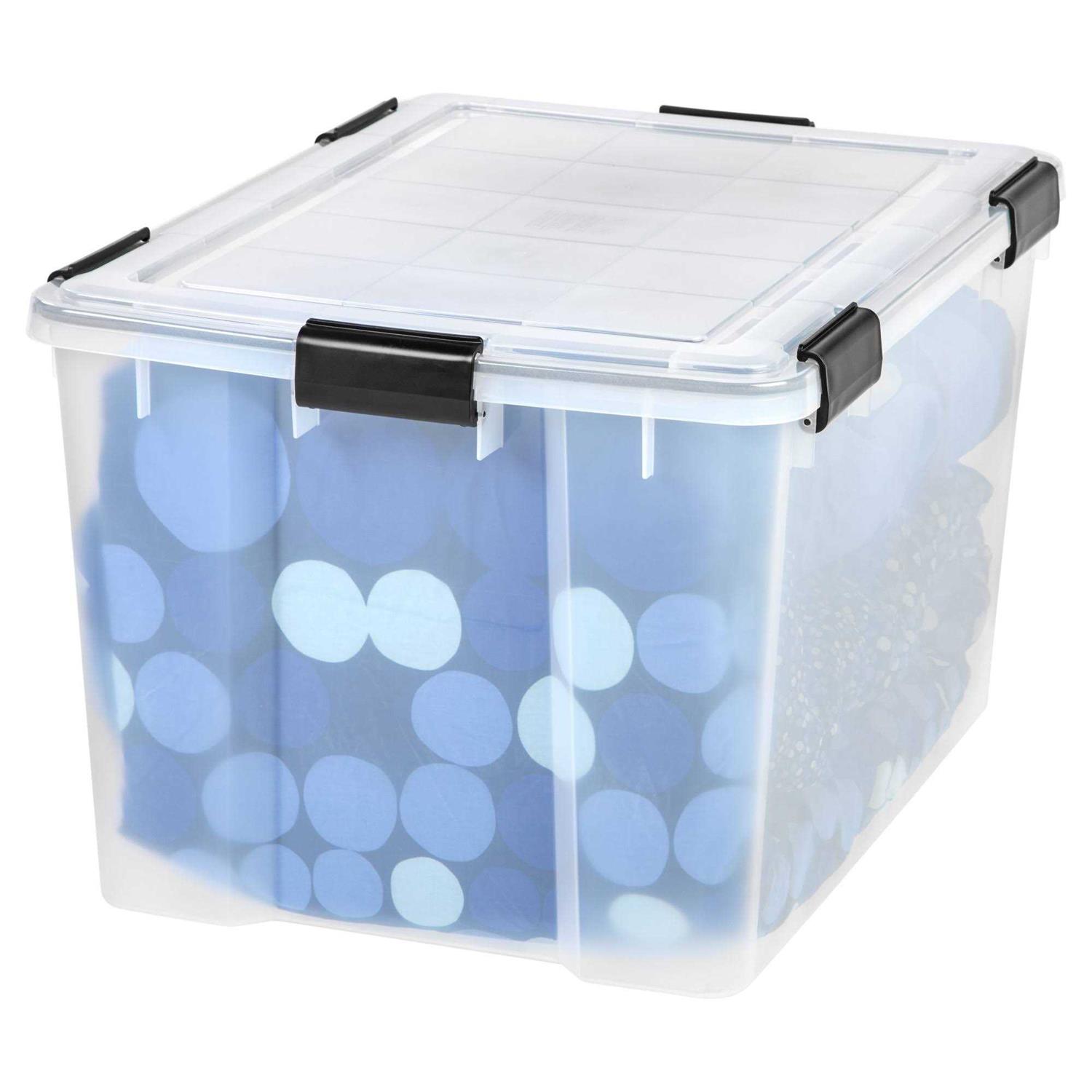 WEATHERTIGHT storage seal on storage tote is the ideal way to keep stored contents clean and dry.