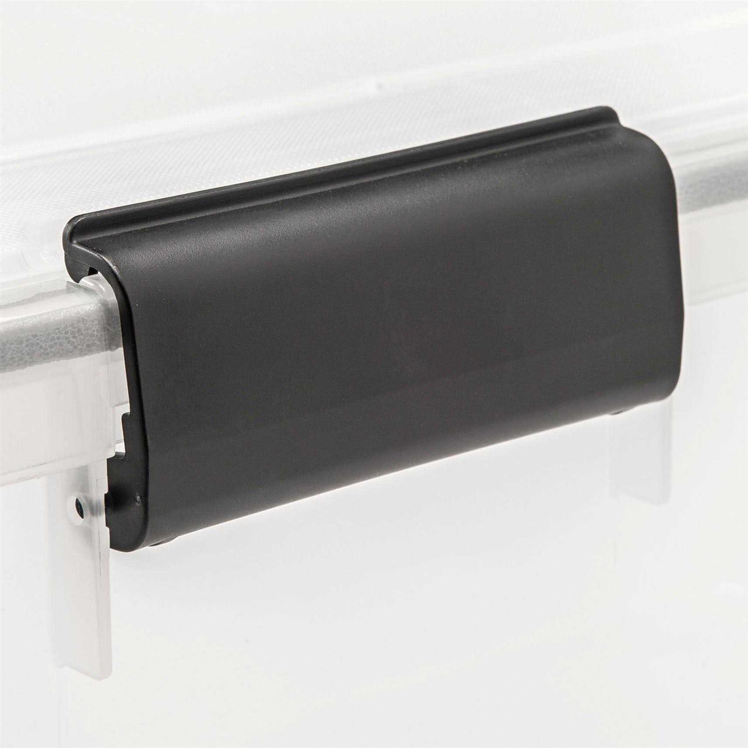WEATHERTIGHT storage seal on storage tote is the ideal way to keep stored contents clean and dry. Reinforced lid provides stability for stackable plastic storage bins. 6 durable buckle latches on WEATHERTIGHT tote lid secure contents inside. 74 quart capacity per large plastic container box. Dimensions: 23.60″L x 17.75″W x 14.50″H. Made in the USA.