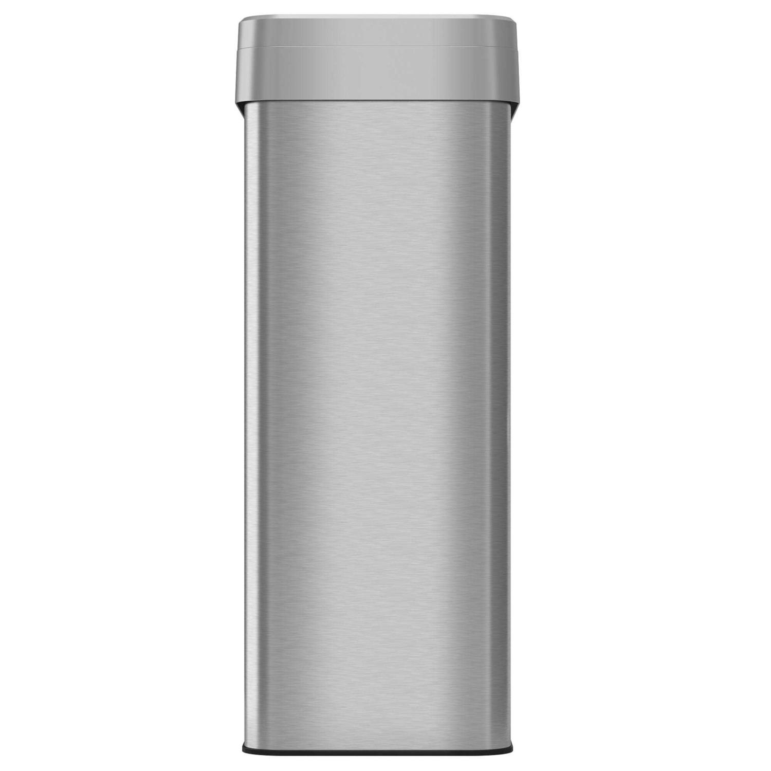Deposit garbage quickly in this open-top iTouchless trash can. The slim rectangular design is ideal for small spaces or placement against a wall, and the body resists fingerprints and smudges, reducing cleaning needs. Two natural carbon filters absorb and neutralize odors, keeping the area fresh. This iTouchless trash can has air vents that help you remove full bags.