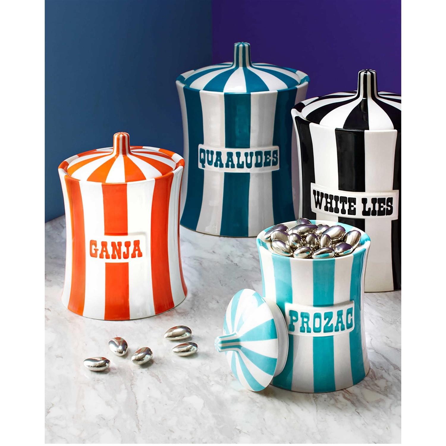 Jonathan Adler Vice Quaaludes Canister Canister Hand-painted high-fired porcelain finished with a gloss glaze