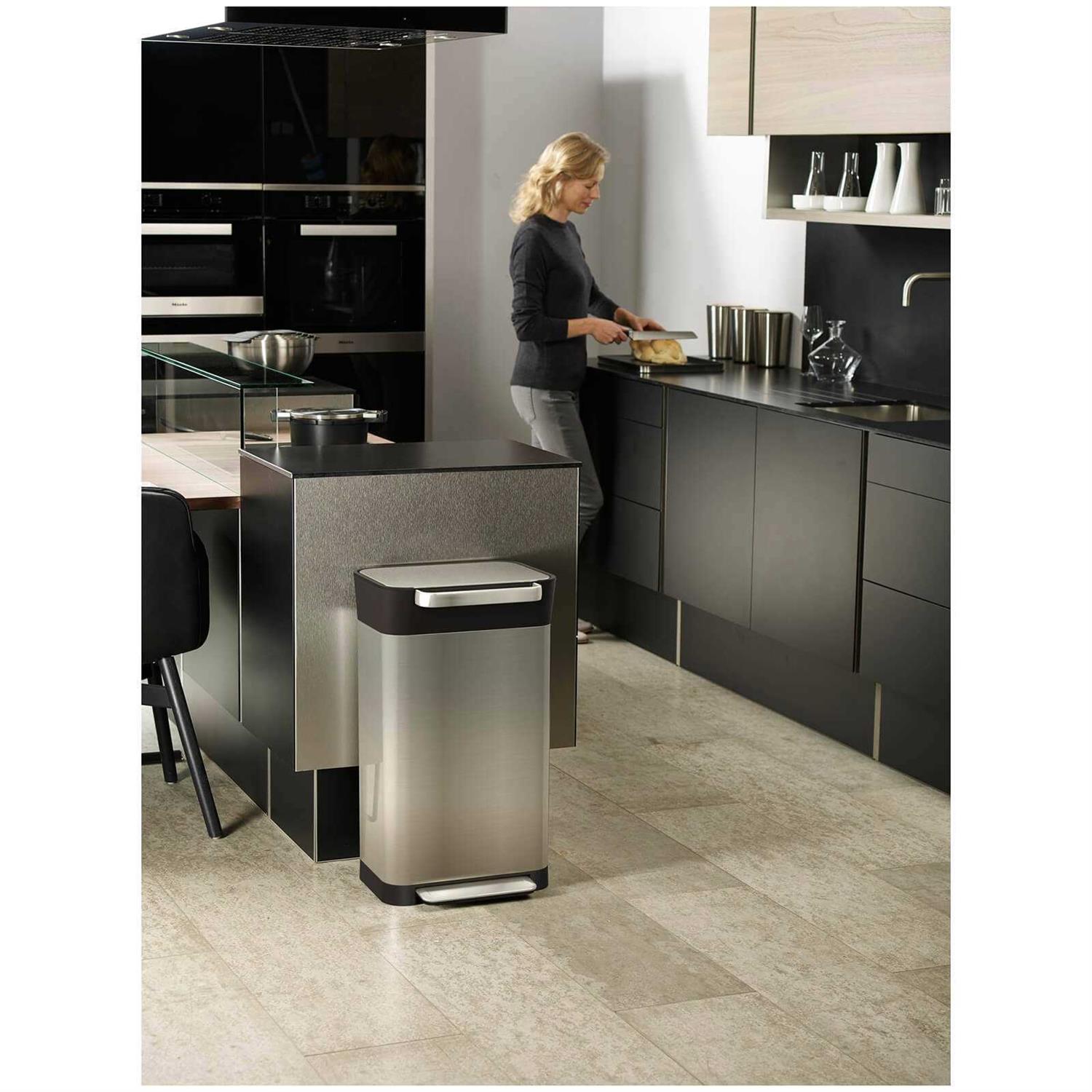 Titan is no ordinary waste unit. It features a patented, hygienic compaction system that enables it to hold up to 3 times more waste than a similar-sized domestic unit. Because Titan compacts your waste, it doesn’t need to be emptied as often, which in turn reduces the number of liners you use and also the number of full liners that you have to deal with between collections. Titan is built to last. Its compaction system and foot pedal have been tested over 100,000 times and are engineered to withstand repeated downward force. It’s hygienic and mess-free too. The unique design ensures only the inside of the plastic liner touches the trash whilst compacting, leaving you with clean hands and a clean bin. It also features a replaceable odor filter for any unpleasant smells and a fingerprint-proof stainless-steel coating.