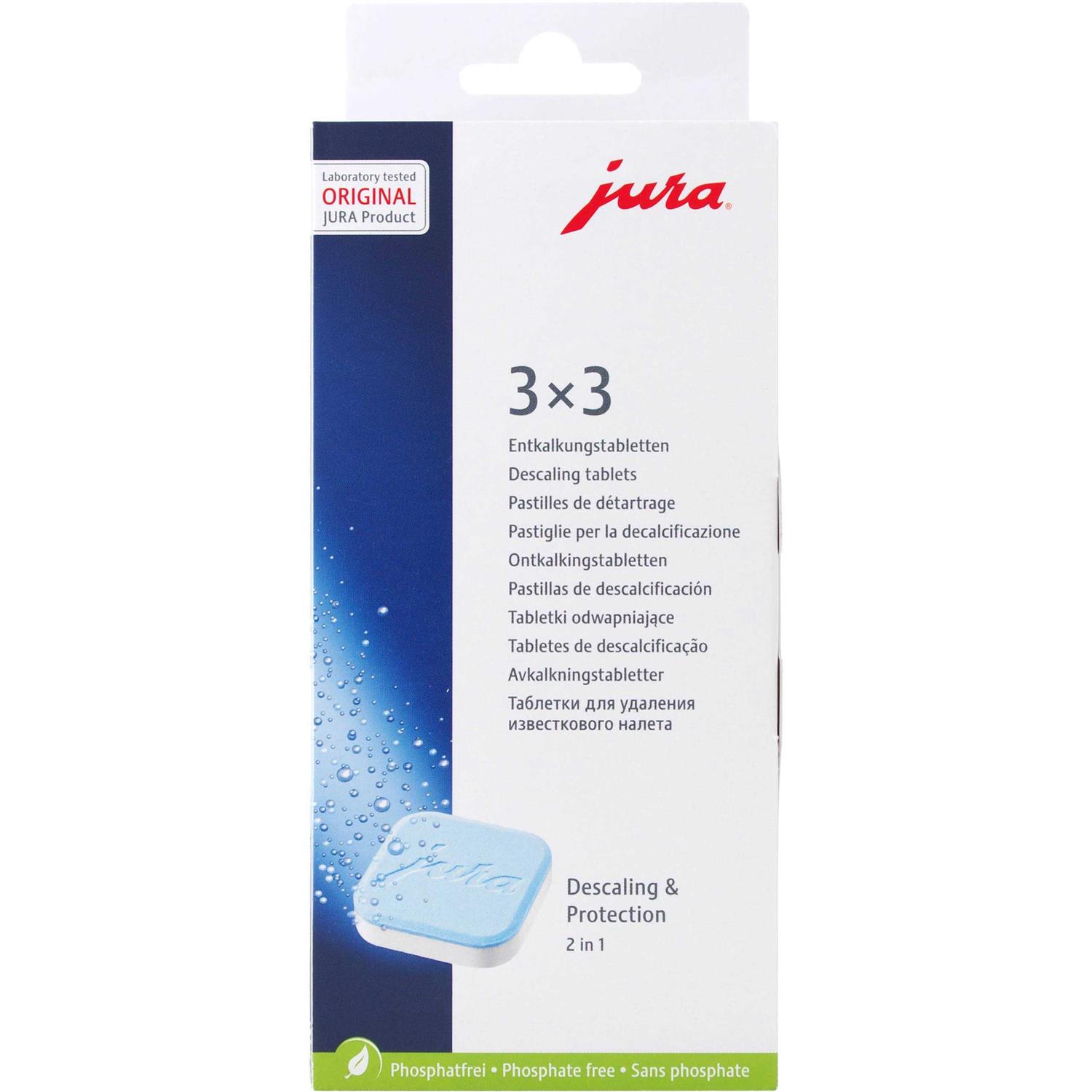 If you have a Jura beans-to-cup machine you will need these descaling tablets. If you have a Jura bean-to-cup machine you will need these descaling tablets. Scale is the biggest enemy of all household appliances that involve the use of mains water. The machine will prompt you to use one and you simply need to drop one into the ground coffee chute and run the cleaning cycle. The tablet is dissolved during the cleaning process and the resulting solution removes the scale build-up that accumulates through normal daily use. Proper descaling will prolong the life of your machine and give better tasting coffee. Contains 3 individually sealed blister packs thus this packet is good for 3 descaling cycles.