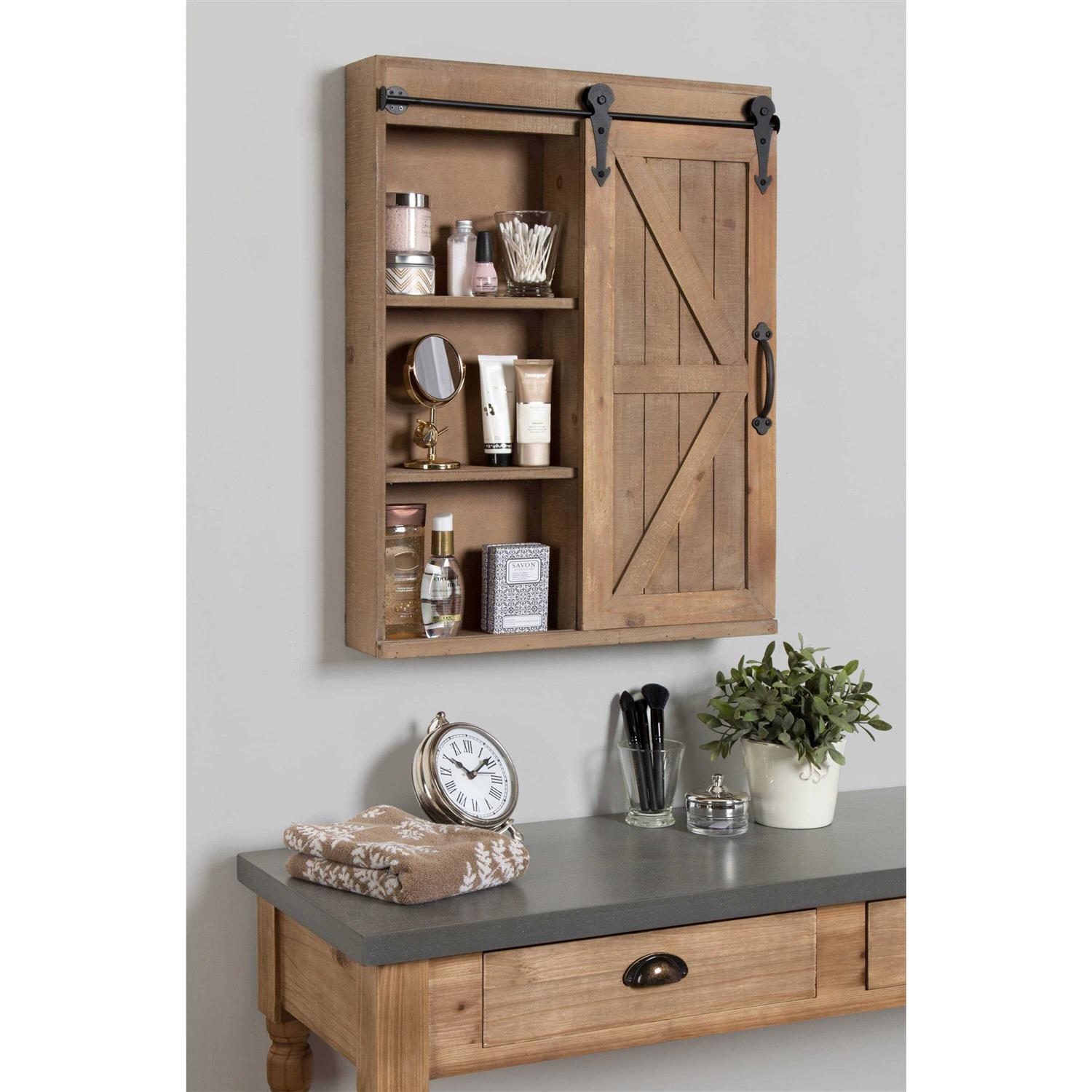 Kate and Laurel Cates Decorative Wood Wall Storage Cabinet with Vanity Mirror and Sliding Barn Door