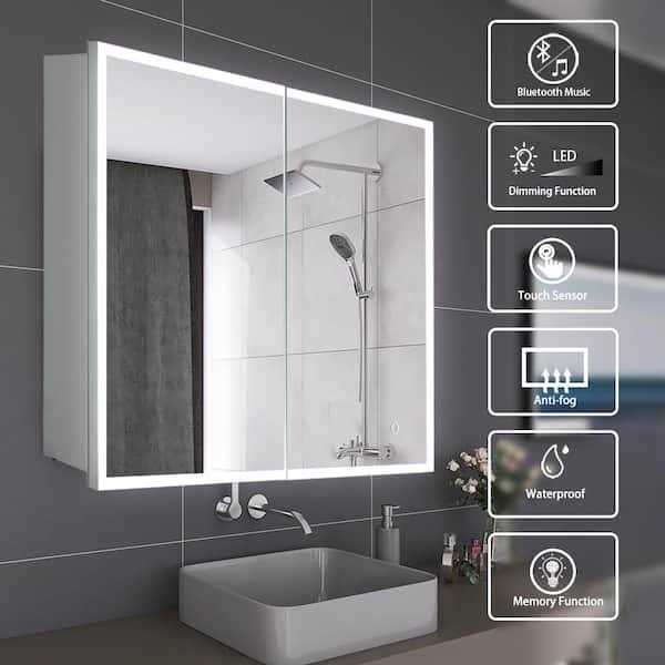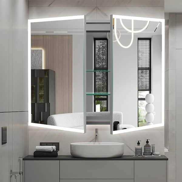 This Medicine Cabinet is a sleek and modern storage solution for your bathroom that can be easily installed as a recessed or surface-mounted cabinet based on your preferences. The frameless design gives it a contemporary look, while the two adjustable shelves provide ample space for storing your toiletries and other bathroom essentials.In addition to its functional storage features, this medicine cabinet comes with LED lighting that provides bright and efficient illumination for your morning routine. You can even adjust the brightness of the mirror light to your liking. Additionally, the mirror features a defogger function that helps keep it clean and clear.The cabinet is made from durable aluminum materials, ensuring that it will last for years to come. To add to its functionality, this medicine cabinet also comes with a Bluetooth speaker, allowing you to enjoy music while getting ready for the day.Overall, This Medicine Cabinet is a practical and stylish addition to any bathroom. Color: Glass.