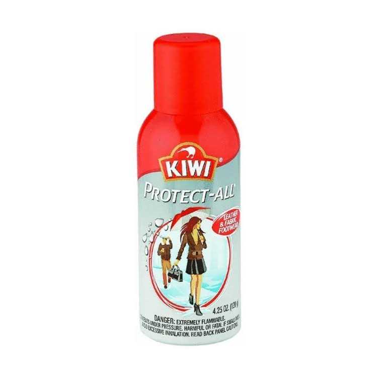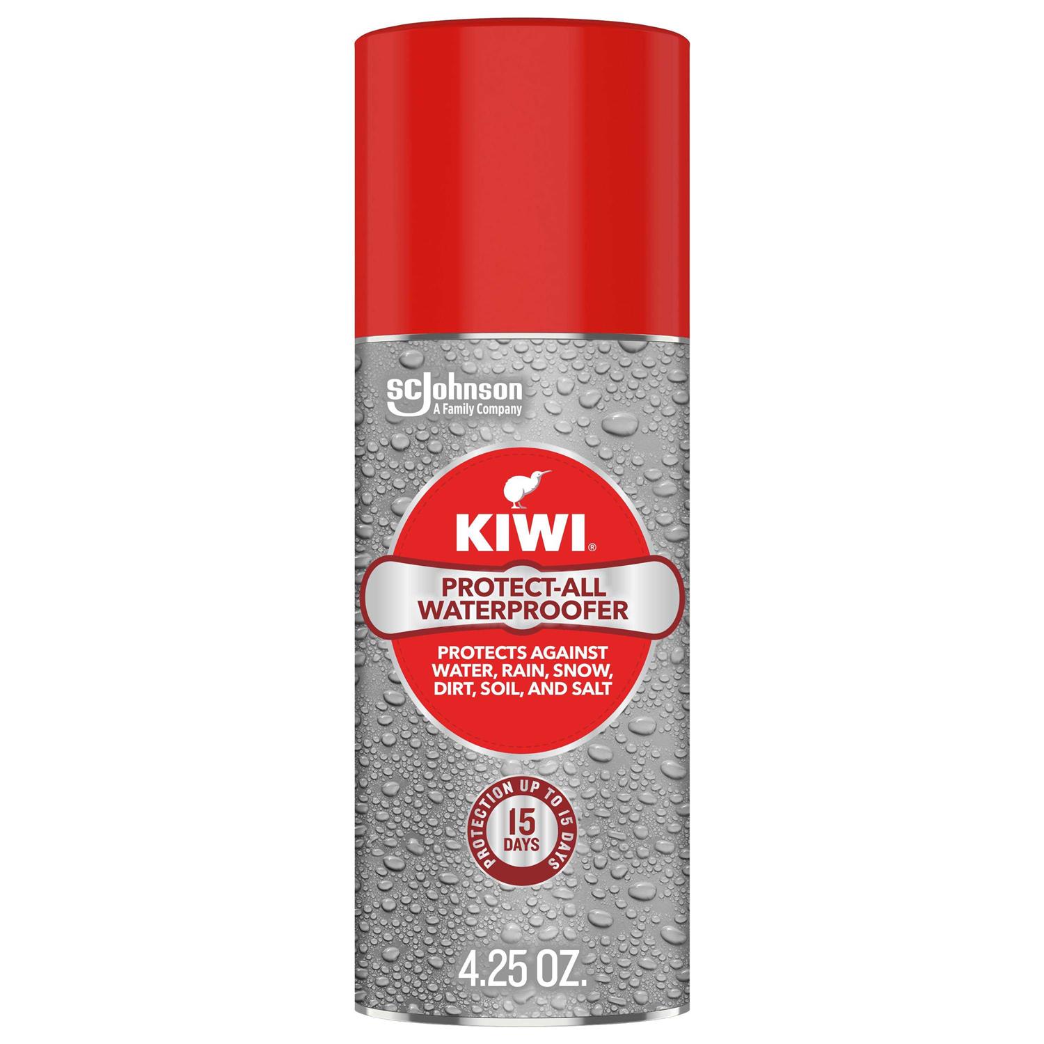 KIWI Protect-All Waterproofer creates an invisible shield that helps prevent water and dirt from penetrating your shoes and accessories, while still allowing them to breathe.