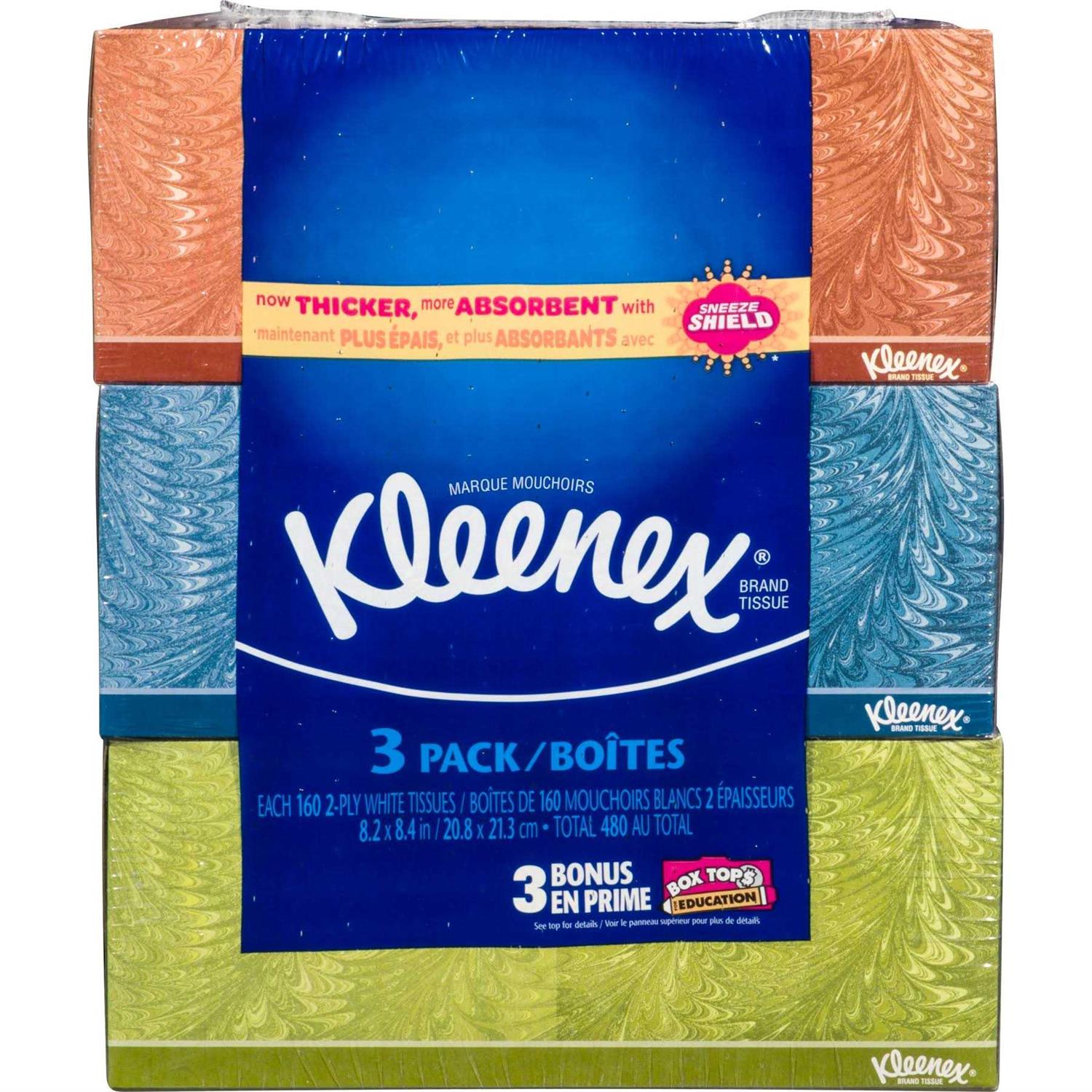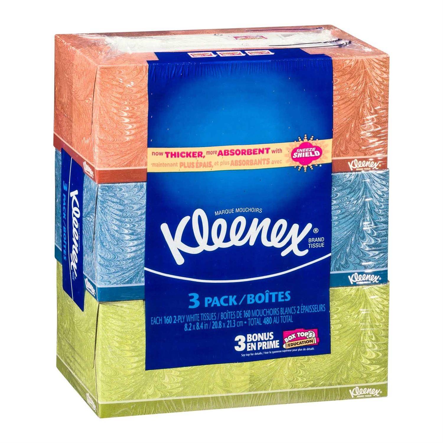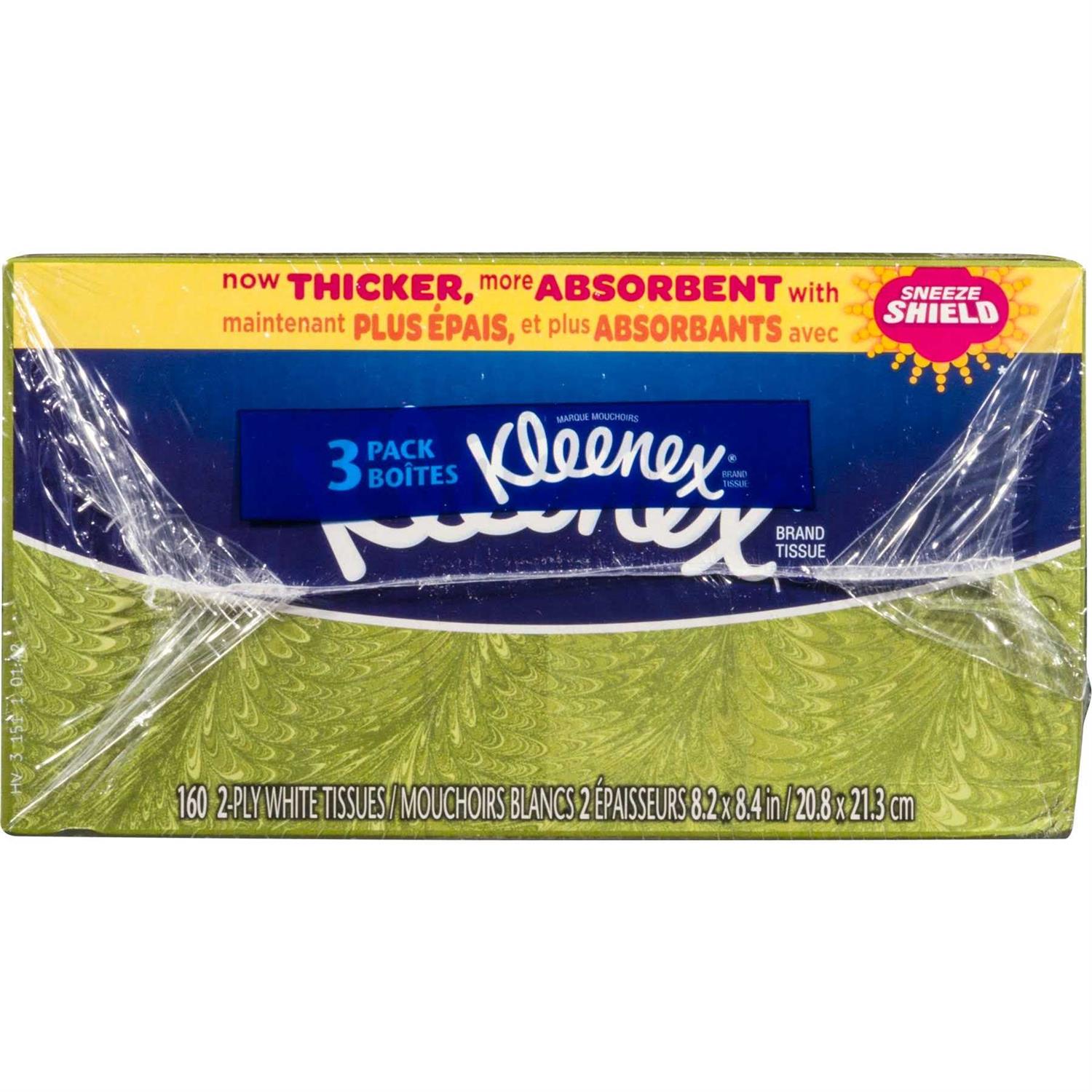 • Contains 3 boxes with 160 Kleenex Trusted Care tissues per pack