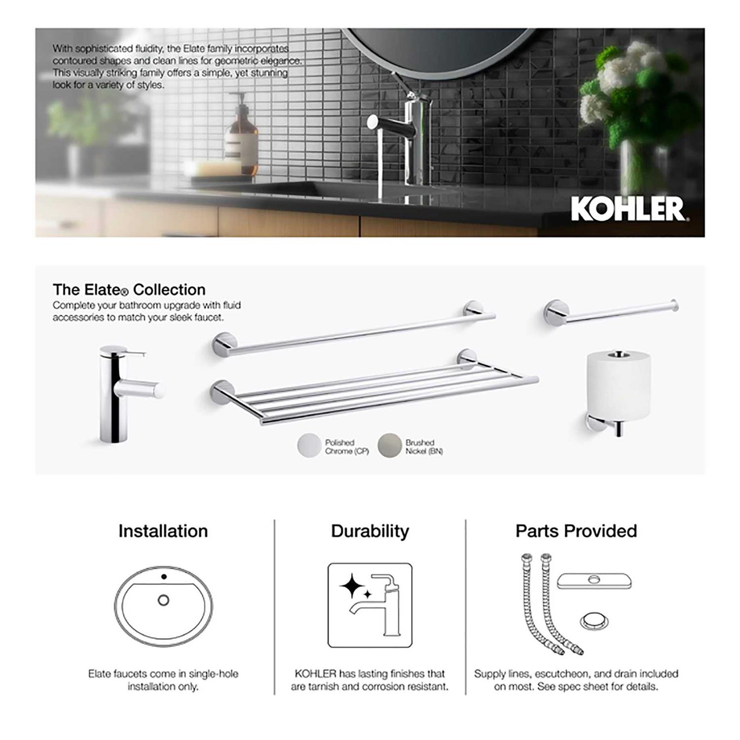 Kohler · Bar · Wall Mounted · Nicke.Minimalist in its design, the Elate towel bar works well in traditional as well as highly contemporary bathroom environments. Features: Coordinates with other items in the Elate collection.