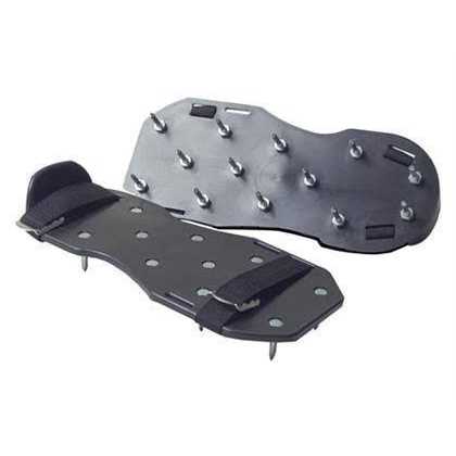 Protect your work and bring air bubbles out of applications with this pair of flexible unite spiked shoes. The BLACK plastic lets you work in ease and comfort. Thirteen 1-1/2 In. steel spikes (overall length) are precisely positioned around the plastic base for balance when walking on epoxy, sealers, gunite, and shotcrete materials. The back of each shoe has a stop to prevent work boots from moving around the shoe. Each shoe is equipped with two adjustable nylon straps that fit around the work boot. Plastic clasps secure straps to minimize loosening that occurs with Velcro closures. The overall length of shoe is 12 In.. Use with work boots for safety. One size fits most. Kraft Tool Co. has been an American manufacturer of quality hand tools for the concrete, masonry, asphalt, plaster, drywall, tile, floor covering, and leveling trades for over 35 years.