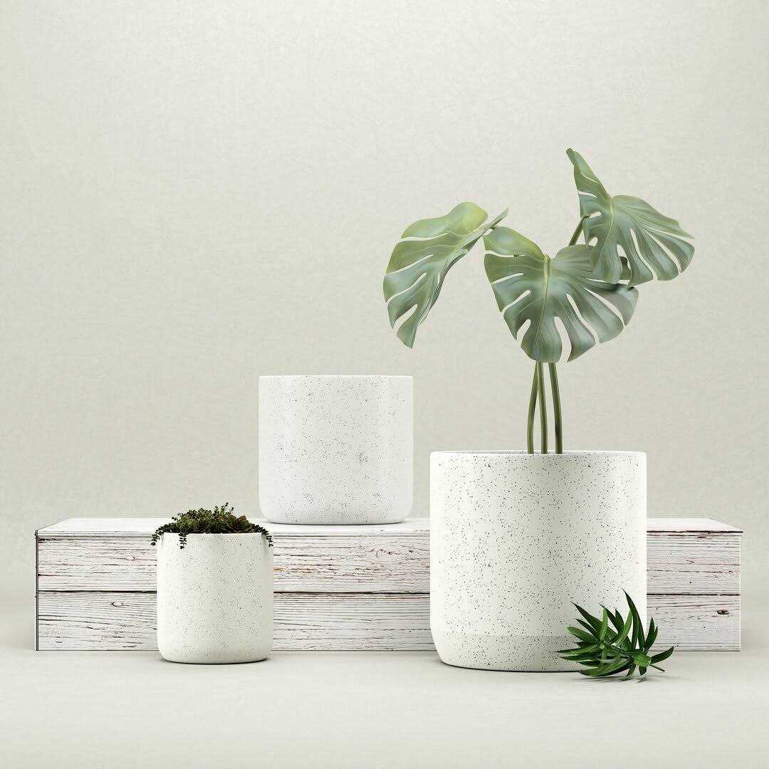 Large 3 Piece Ceramic Pot Planter Set Color: Speckle White