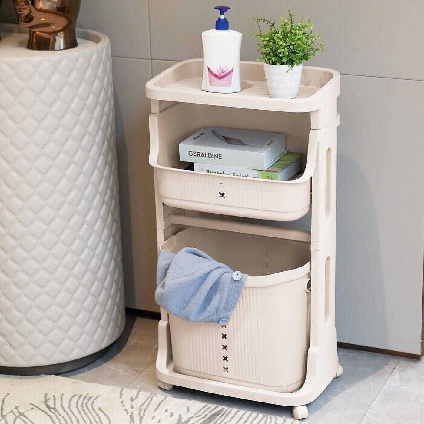Make laundry day a breeze with our Laundry Cart with Removable Laundry Basket. This vertical hamper simplifies organizing and sorting laundry, while the detachable basket provides multi-functional storage options for your convenience. With four rotating wheels, easily move the cart in any direction. Choose from 2 or 3 baskets in gray, white, or off-white to suit your needs. Features: Vertical laundry hamper simplifies sorting and organizing Detachable laundry basket provides multi-functional storage Four rotating wheels for easy movement Made of high-quality, harmless plastic that is durable and easy to clean 2 Baskets: Multi-layer design maximizes bathroom space utilization 3 Baskets: Basket can be used alone with seamless stickers for versatile storage in multiple scenarios Dimensions: 2 Baskets: 31.1” H x 16.9” W x 11.4” D 3 Baskets: 29.1” H x 17.3” W x 12.2” D