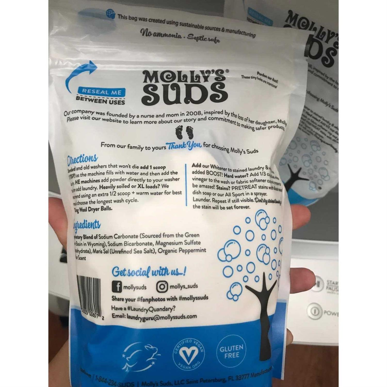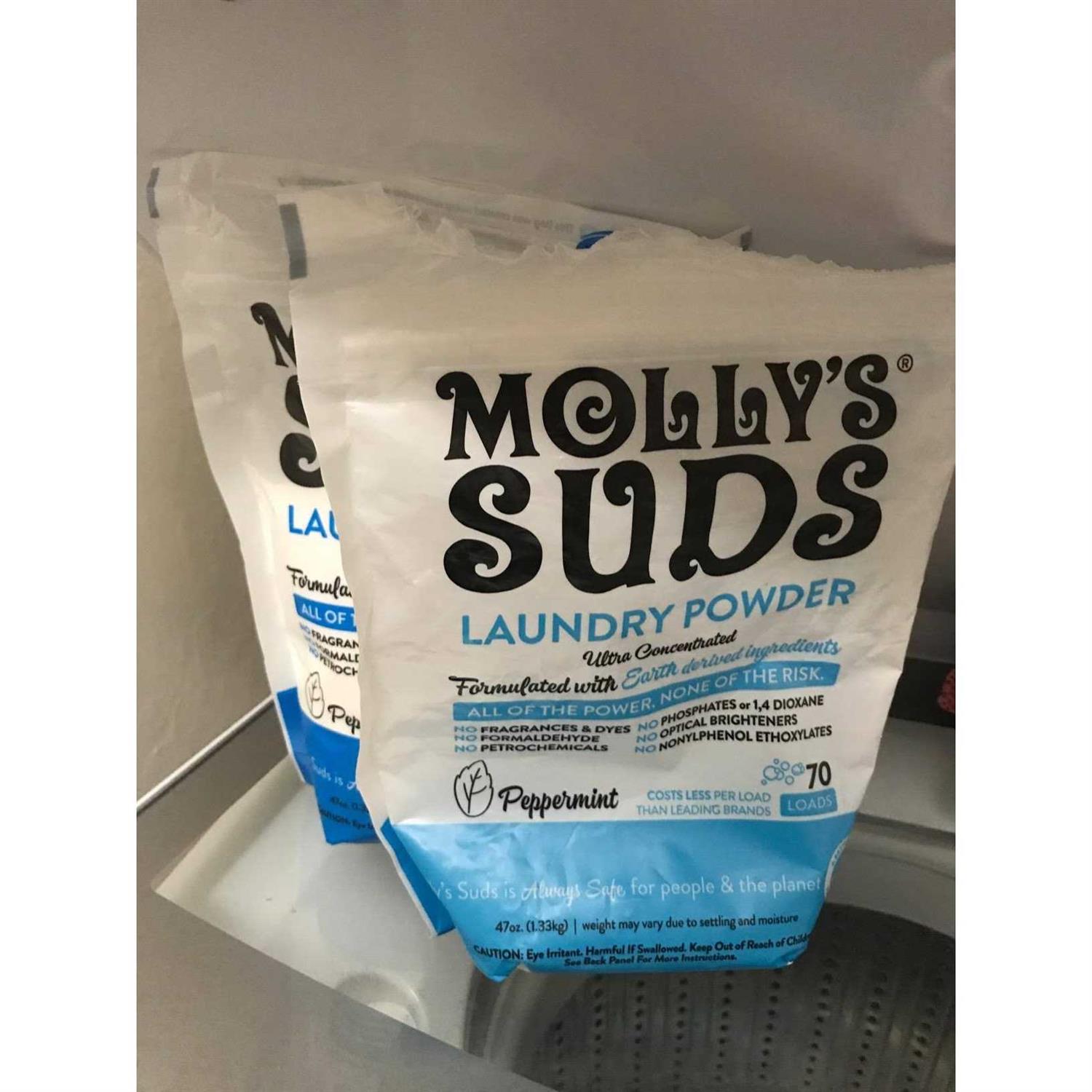 Comprised of only five earth-derived ingredients and formulated especially for sensitive skin, Molly’s Suds Laundry Powder is safe and ideal for your clothes AND your family. The super-concentrated powder is long-lasting and affordable, with just one tablespoon required per load. Just as effective as conventional brands and more effective than natural brands, without the use of harsh chemicals, toxins, fillers, carcinogens, preservatives or GMO ingredients. Works great in all water temperatures and hard water, and is septic- and High Efficiency (HE) washer-safe. Molly’s Suds products are made without chemicals that compromise human health and in turn, are also safe for the Earth. You can use these guides, tips, and tricks for happy and effective laundering!