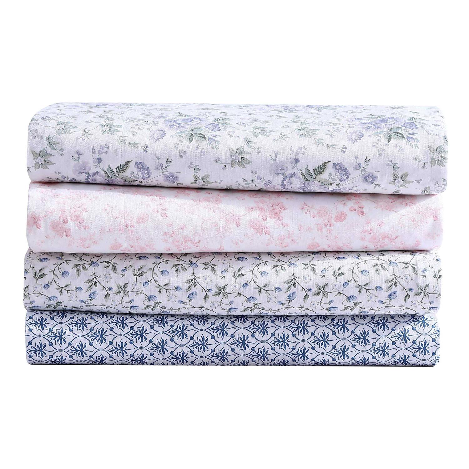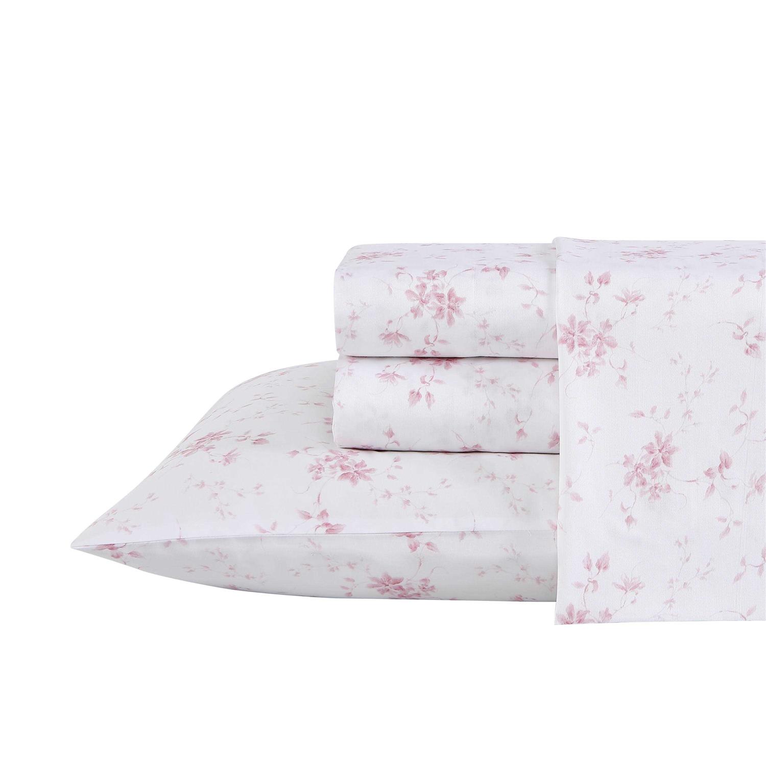 Bring cottage charm to your bedroom with a new Laura Ashley cotton sateen sheet set. Laura ashley’s signature florals and prints are timeless classics that offer beautiful designs. You are sure to find the perfect fit to mix with both solid and patterned bedding. The sheets are made of long staple cotton with a 300-thread count and a lustrous sateen weave that gives you that super soft and silky feel. Sheets soften with each wash. The twin set includes one fitted sheet one flat sheet and one standard pillowcase; the full and queen sets include one fitted sheet one flat sheet two standard pillowcases; the king set includes one fitted sheet one flat sheet and two king pillowcases. Included fitted sheet features a 15″ deep pocket (13″ for twin and 14″ for full sizes) to help keep the sheet in place. Machine washable for easy care.